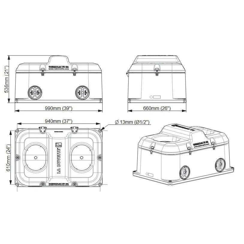 - 6 wing nuts for easy opening, allowing the float to be opened and closed.