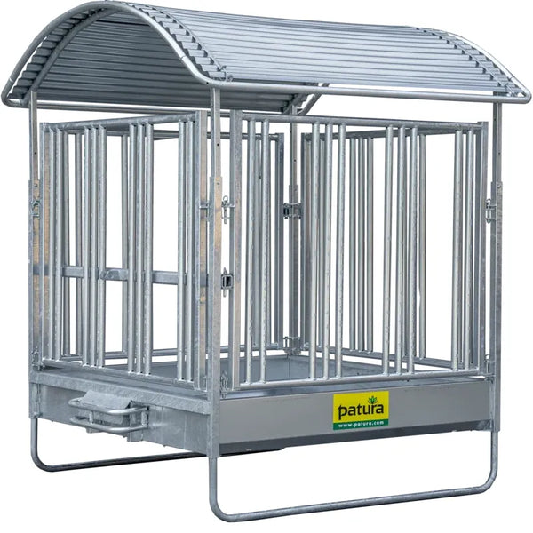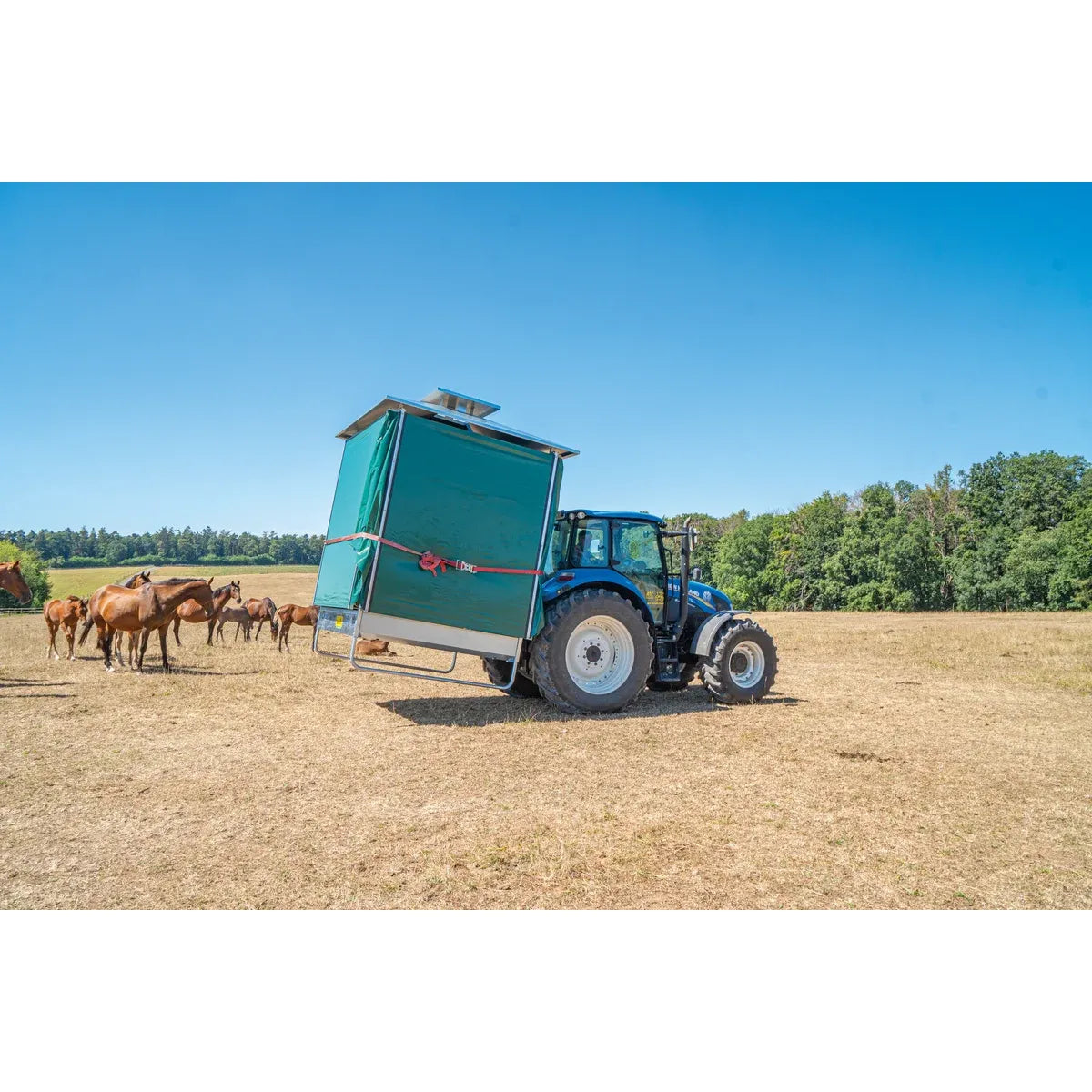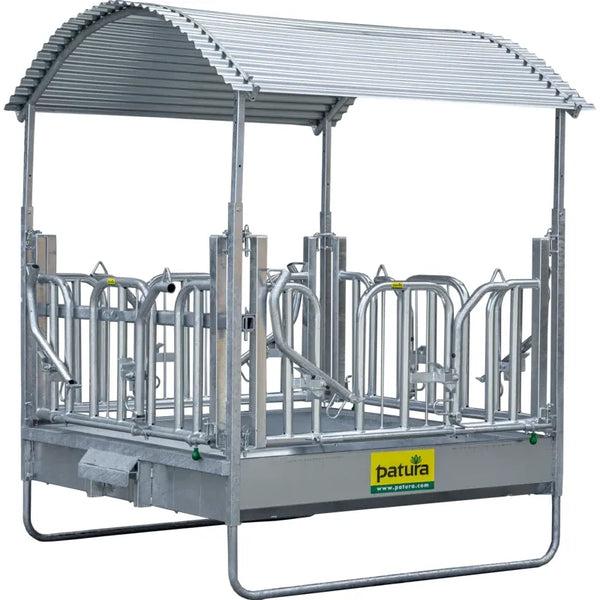 The usual three-point hitch can be used for easy transportation of the entire rack. The shading elements can be folded in for road travel or for moving from pasture to pasture.