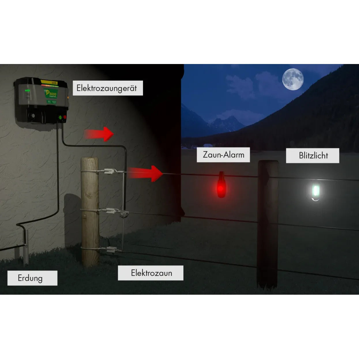 Place the flashing light or fence alarm at the end of the fence. At a glance, you can be sure that the fence voltage is OK at this point and therefore also at any point between the device and the end of the fence.
