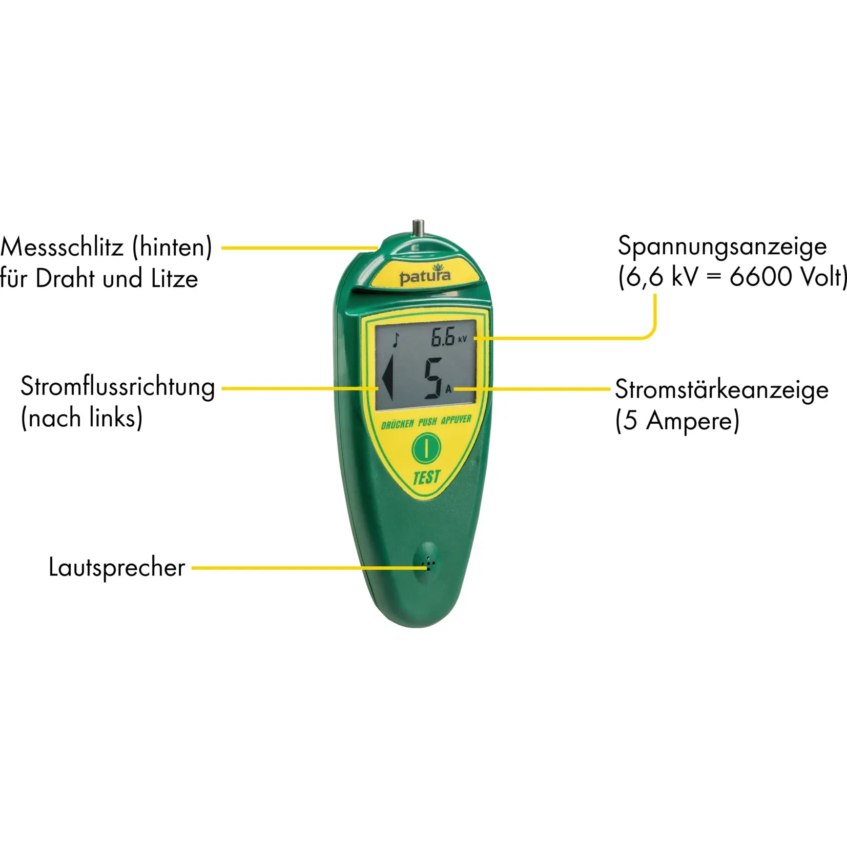 A new development in testing devices is the fence compass, which shows you where the current is being lost in your fence. Technically, the device is a digital voltmeter with a built-in ammeter that shows you the fence voltage, amperage and direction of current flow. The device works without the use of a ground rod for easy handling. With illumination and acoustic display for current on the wire.