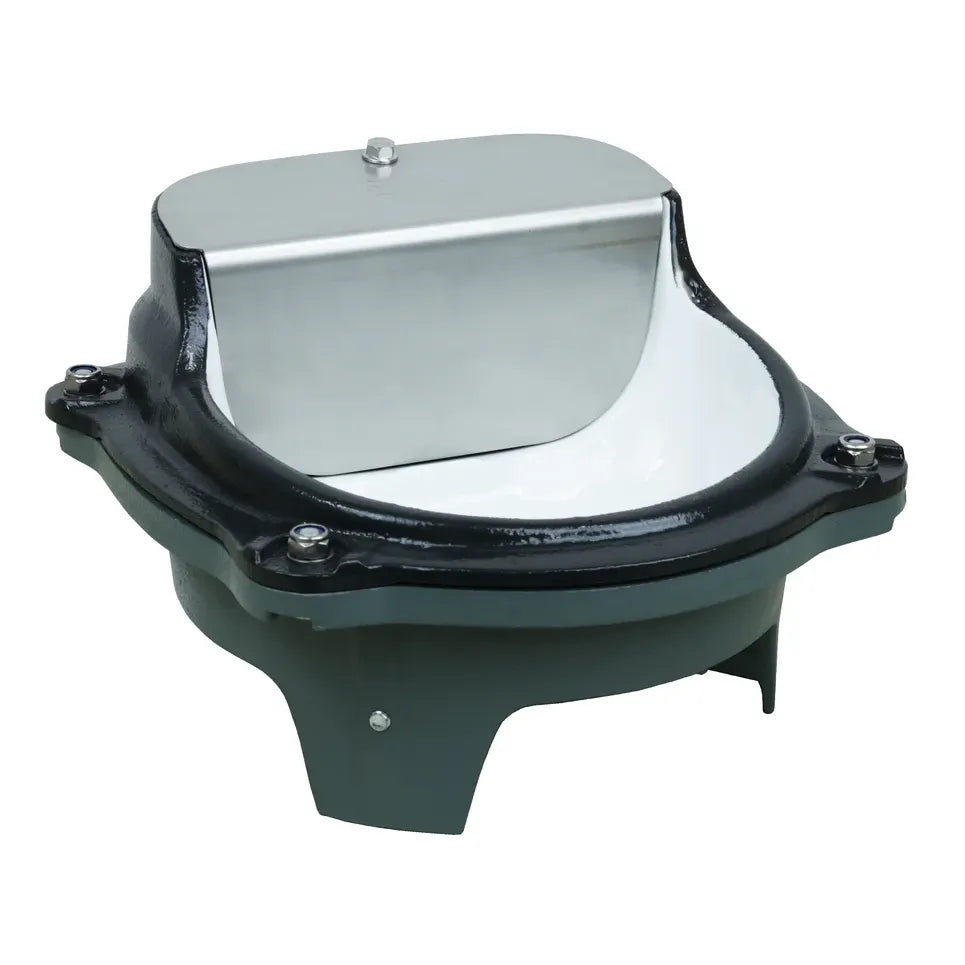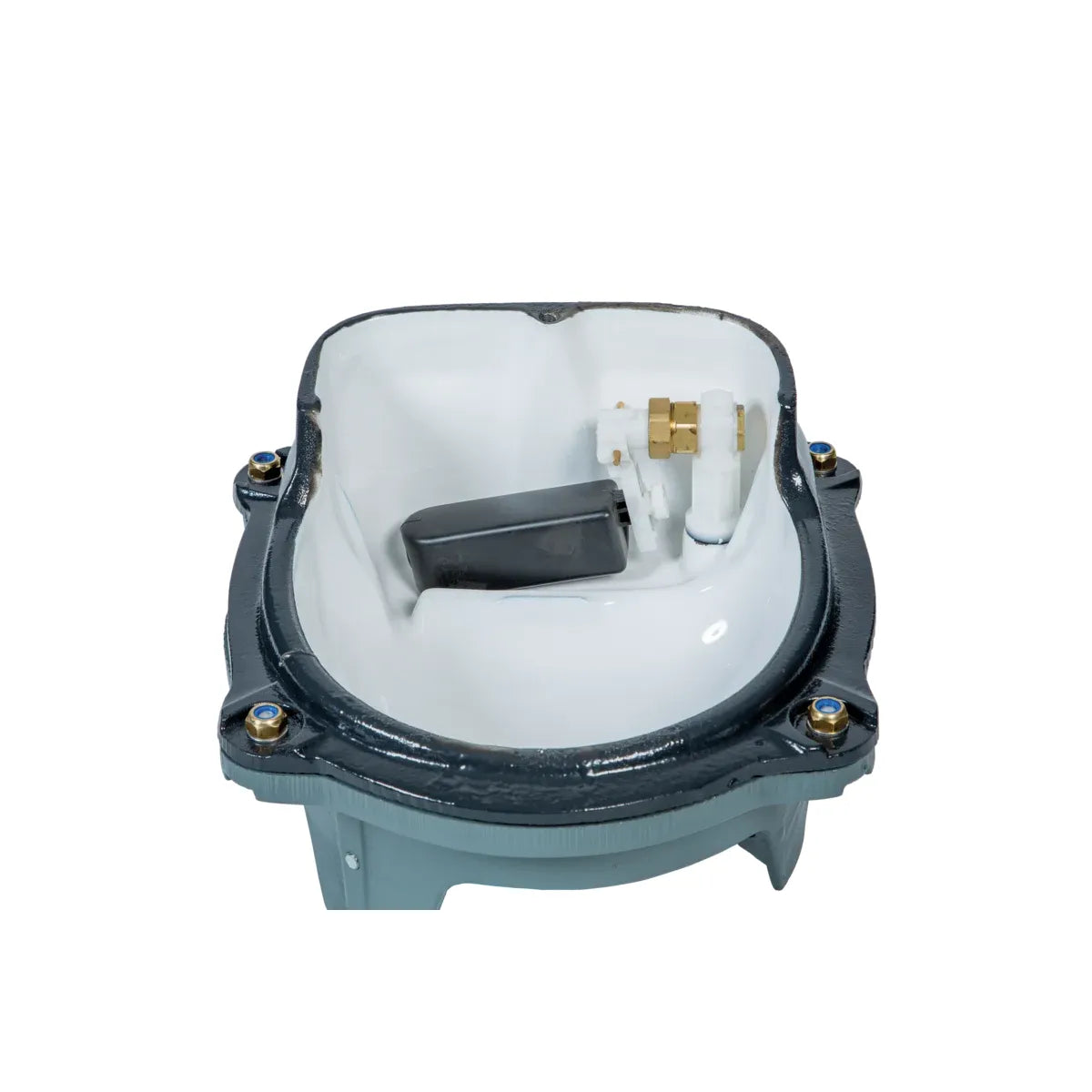 - Cast iron bowl with white enamel interior