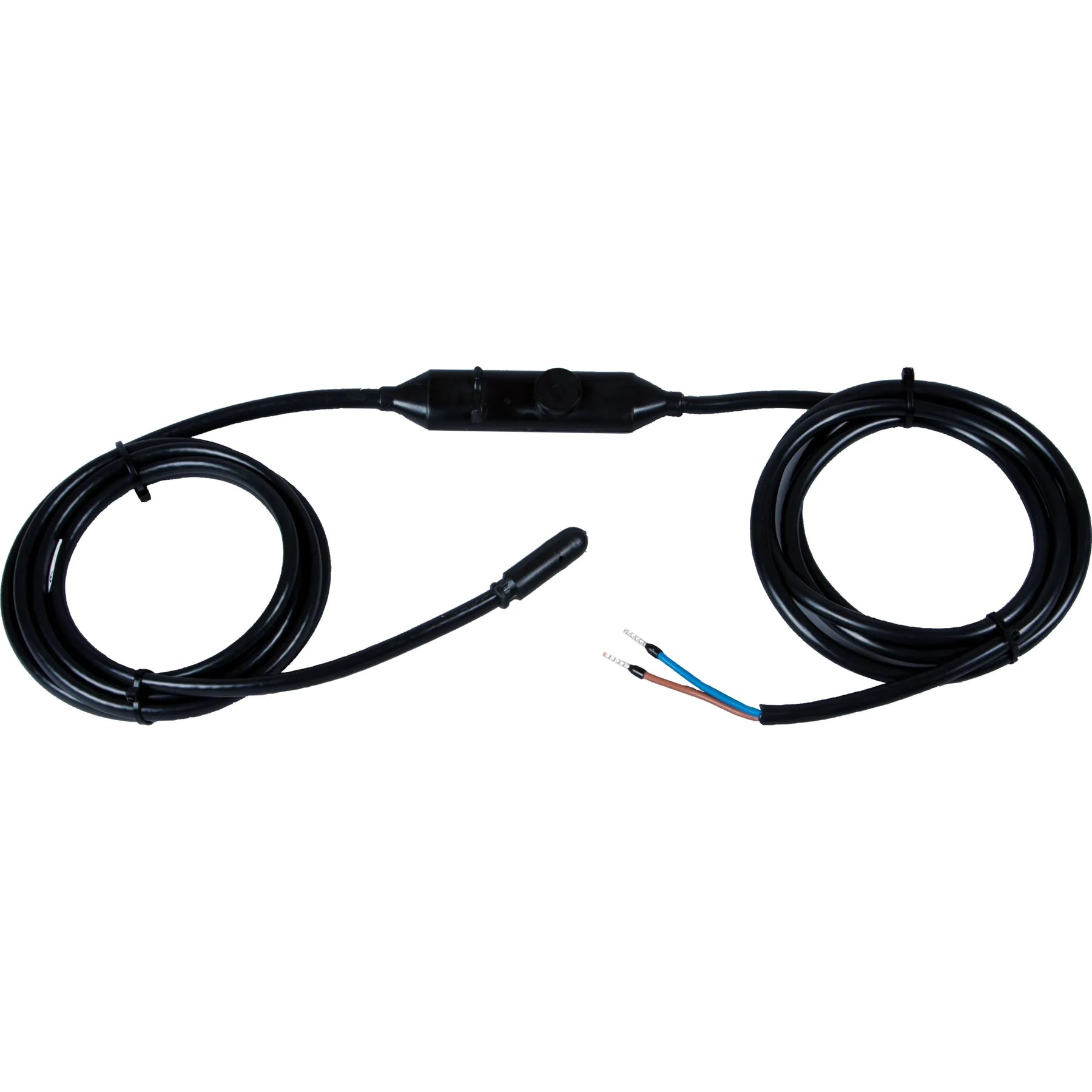 The frost protection heating cable is used to keep pipes warm that are at risk of freezing. This allows you to prevent pipes from freezing. The heating cable with thermostat control switches on automatically at 5 degrees and off at 15 degrees.