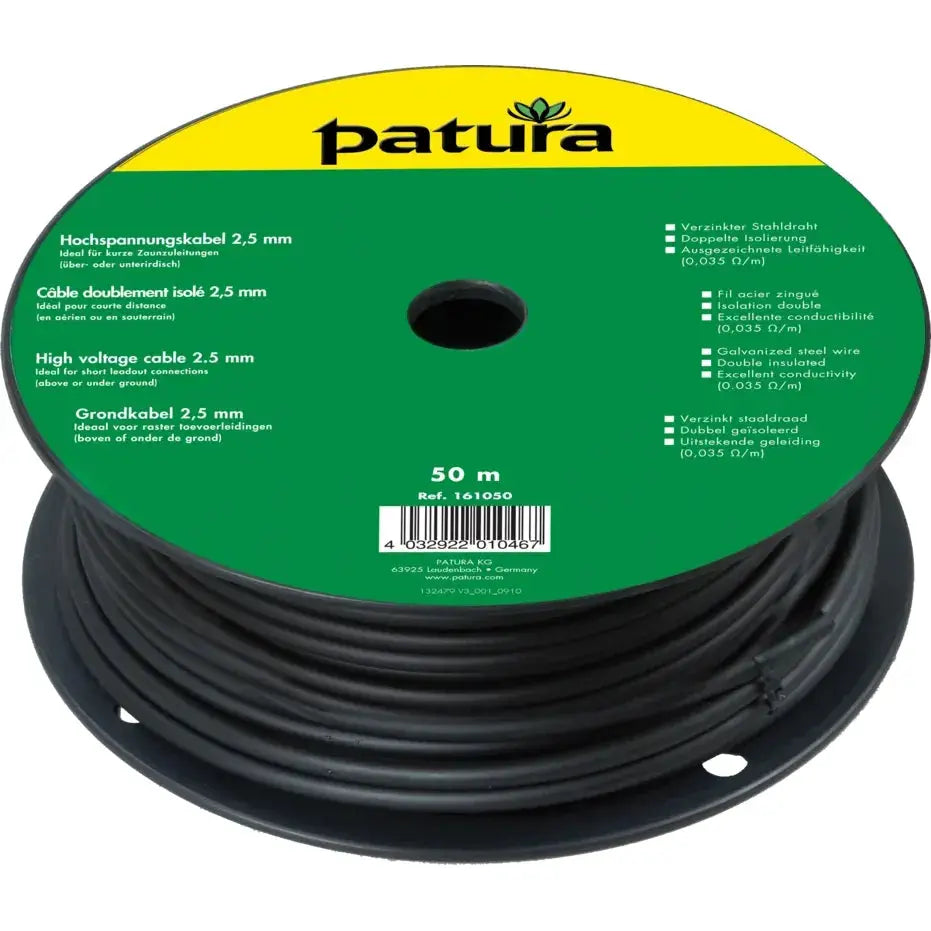 - High-voltage-resistant double-insulated, 1-core cable with 2.5 mm steel wire core