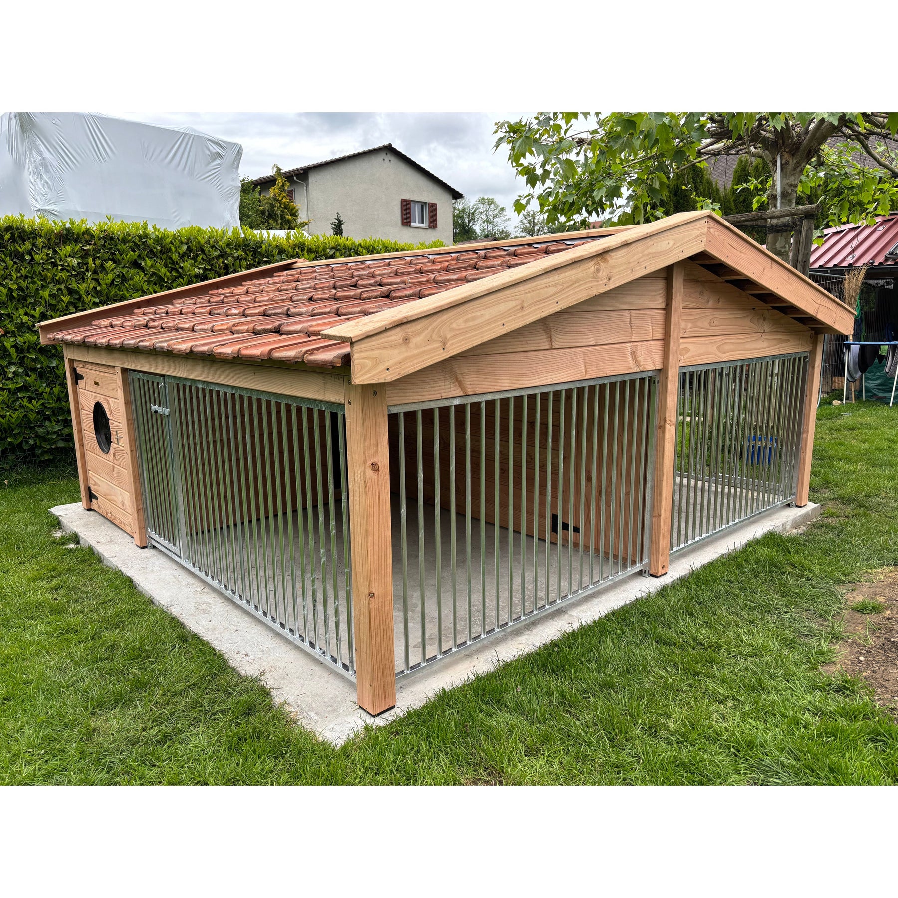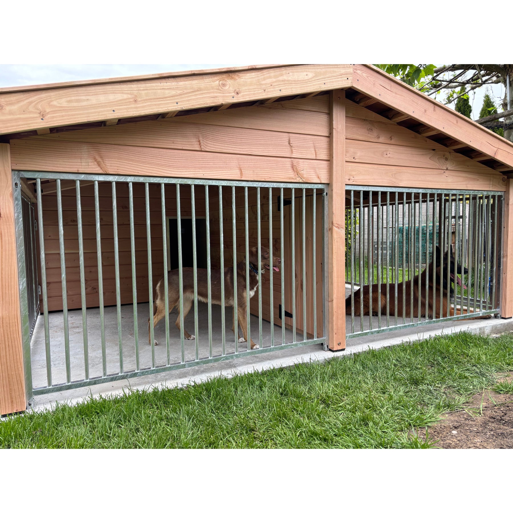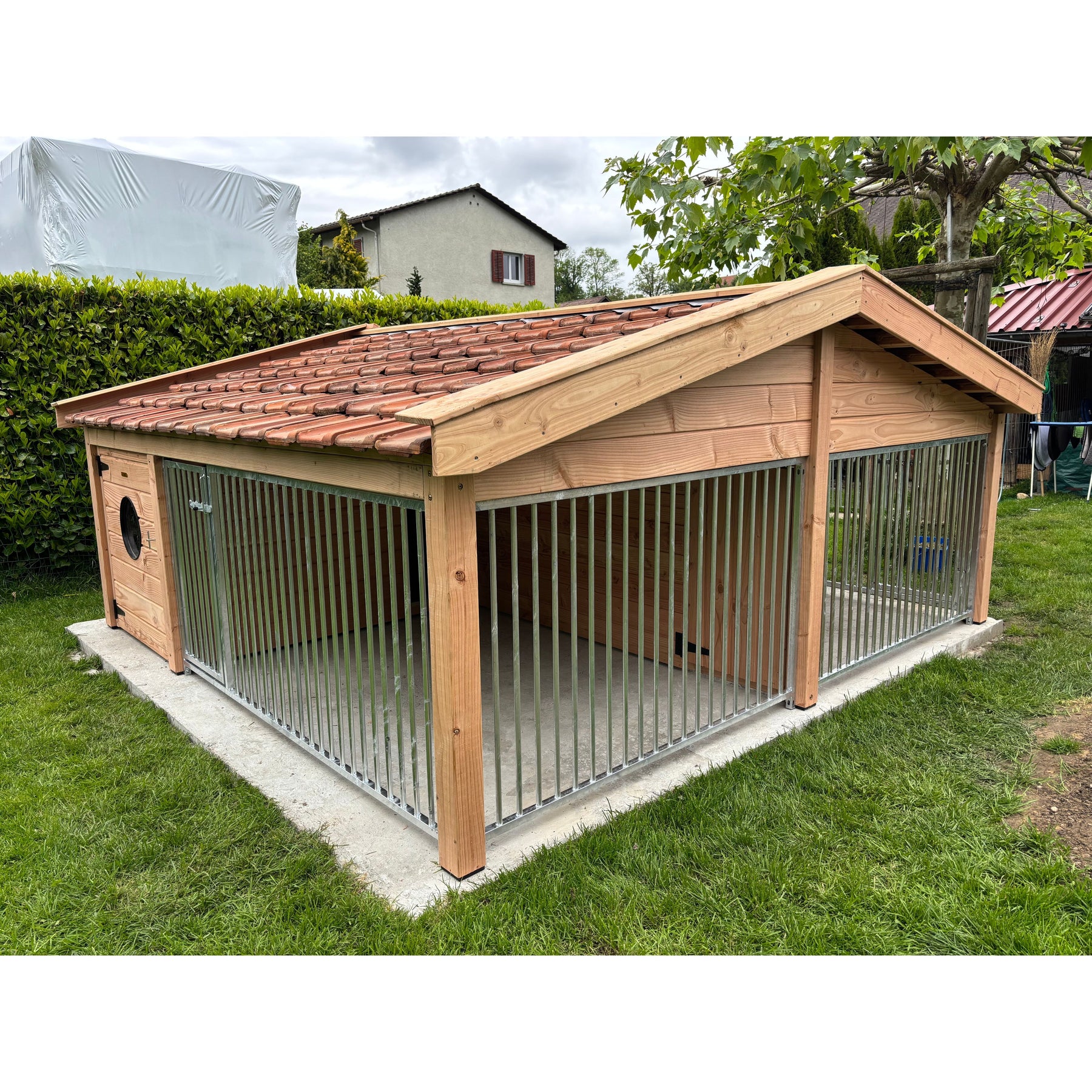 Ideal for housing two dogs, this kennel allows for separate placement so that each dog has its own space. Both compartments are equipped with an innovative, rotating feeding system that makes feeding your dogs efficient and easy. The kennel contains one insulated shelter per compartment, providing optimum comfort and protection from the elements.