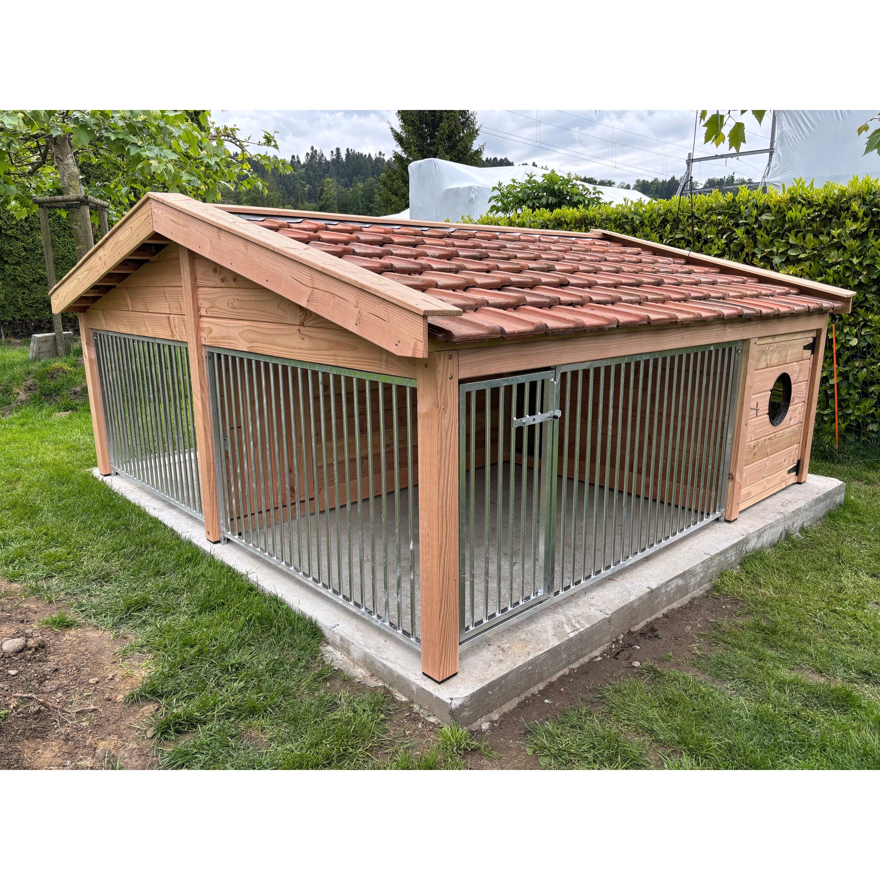 Thanks to our user-friendly 3D configurator, you can design your dog kennel according to your individual wishes. A professional assembly service is available throughout Switzerland to ensure your kennel is built quickly and easily. Create a safe and comfortable retreat for your dogs with this unique dog kennel!