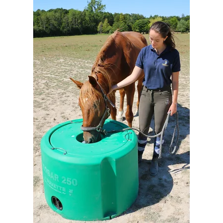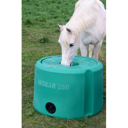 The new Isobar 250 thermal drinker is ideal for supplying water to your animals in locations where there is no running water available. Thanks to the double-walled housing with polyethylene foam filling, the water remains frost-free in winter at up to -15°C and pleasantly cool in summer. The water is protected from the sun, leaves and wild animals by the drinking hole cover, which is simply pushed down for the suction process and then slides back into its original position on its own. Depending on the type of animal and water requirements, 180 liters of usable water can supply a horse for a week in winter, for example.