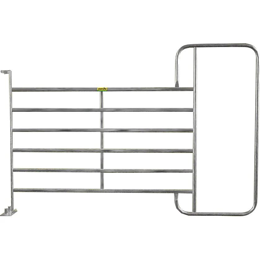 The panel is a stable, completely hot-dip galvanized panel. The panel offers maximum stability with low weight. Optimum stability on the ground and the possibility of slipping thanks to skid-shaped feet. Quick connection of the panels even on uneven terrain thanks to chain fastener with stainless steel screw link. No slipping of the legs of jumping horses between the panels due to raised end pipes.