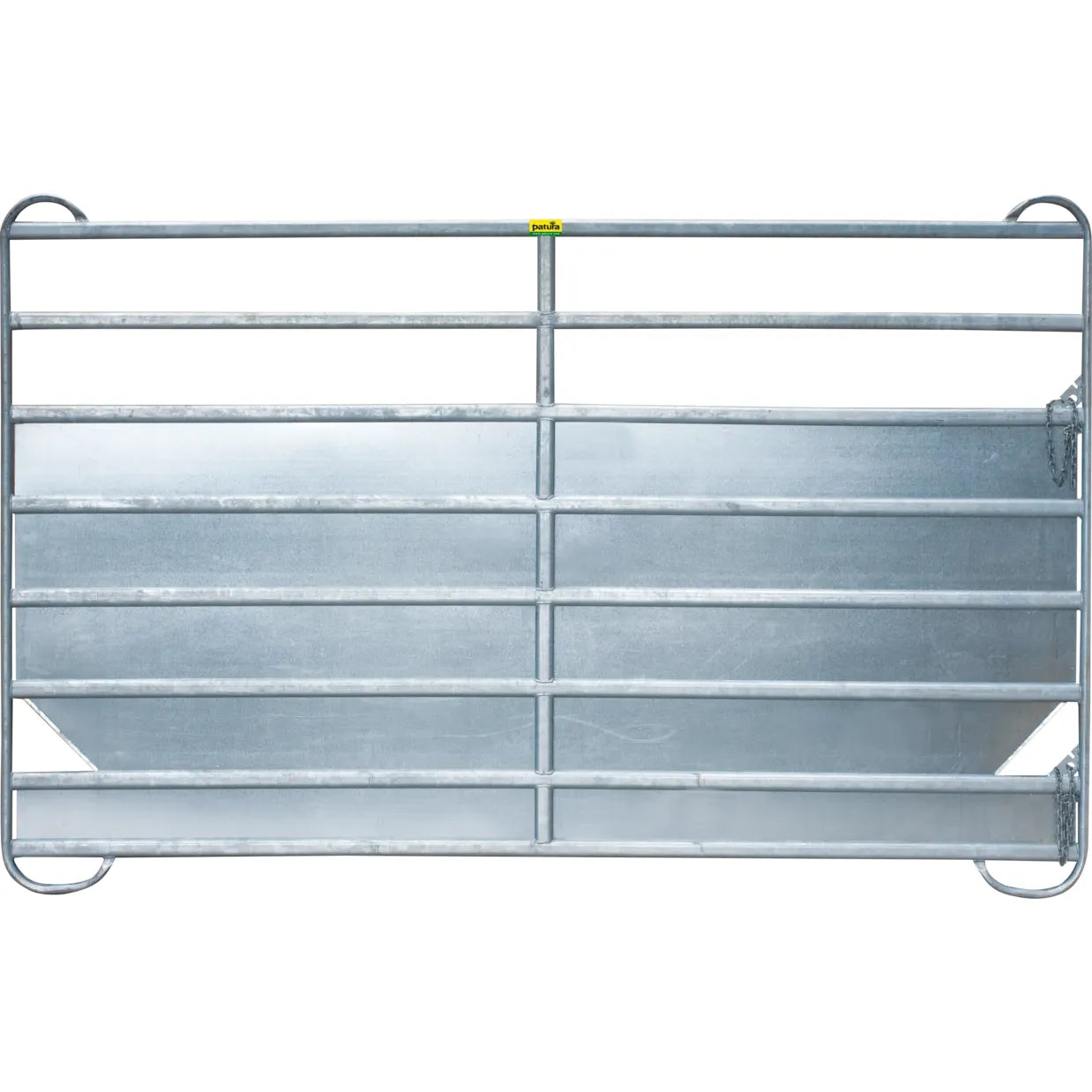 The panel is a stable, completely hot-dip galvanized panel. The panel offers maximum stability with low weight. Optimum stability in rough terrain and the possibility of slipping thanks to the skid-shaped feet. Quick connection of the panels even on uneven terrain thanks to chain lock with stainless steel screw link. No slipping of the legs of jumping horses between the panels due to raised end pipes.