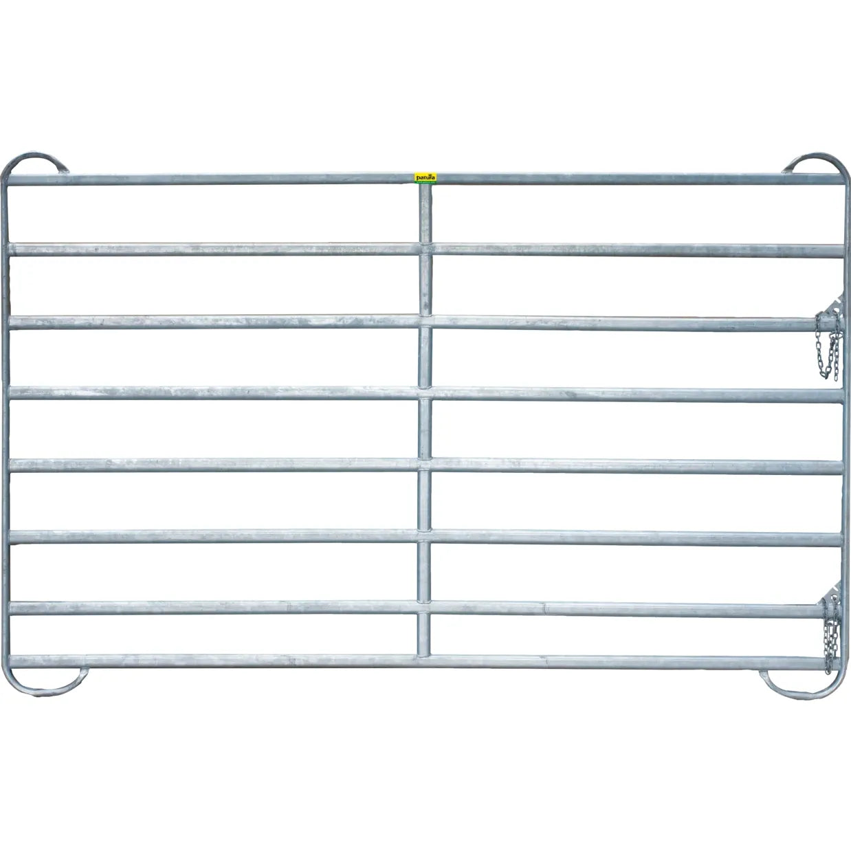 The panel is a stable, completely hot-dip galvanized panel. The panel offers maximum stability with low weight. Optimum stability in rough terrain and the possibility of slipping due to feet in skid design. Quick connection of the panels even on uneven terrain thanks to chain lock with stainless steel screw link. No slipping of the legs of jumping horses between the panels due to raised end pipes.