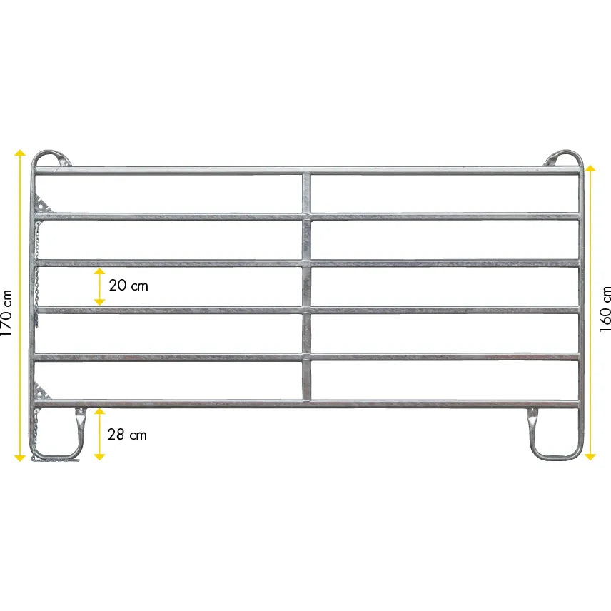 The panel is a stable, completely hot-dip galvanized panel. The panel offers maximum stability with low weight. Optimum stability in rough terrain and the possibility of slipping thanks to the skid-shaped feet. Quick connection of the panels even on uneven terrain thanks to chain fastener with stainless steel screw link. No slipping of the legs of jumping horses between the panels due to raised end pipes.