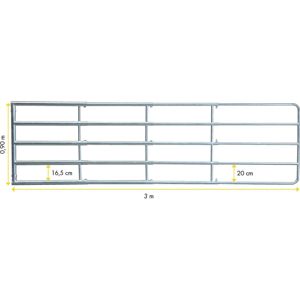 The Compact pasture fence gate is triple adjustable and offers a high degree of flexibility. With a height of 90 cm, it can be adjusted to a nominal length of 1.25-3.00 m and is therefore suitable for small to large passages. The scope of delivery includes the PATURA mounting material, including eyebolts and bolt catch, is included. This can be attached to the last two insertion parts of the hot-dip galvanized gate. Shipment is by parcel service for fast delivery. Get the triple-adjustable Compact pasture gate with a length of 1.25-3.00 m and a height of 90 cm, including assembly parts!