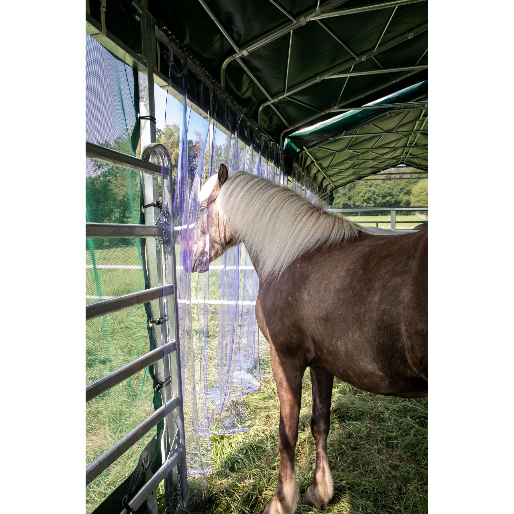 Transparency, protection and safety combined: in heavily frequented areas such as stables, production halls or storage rooms, the curtain allows people, animals or vehicles to pass through freely without giving up its protective function. The strips automatically fall back into their original position after passing through.