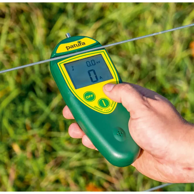 The handy remote control offers unprecedented convenience, allowing you to set a PATURA P 5500 or P 6500 device on and off from anywhere on the fence. Thanks to the integrated fence compass, fence voltage and excessive current loss, which indicates fence faults, can be checked at the same time. All measuring and switching operations are carried out without the inconvenience of inserting an earth rod. You save valuable time when checking and repairing your fence systems.