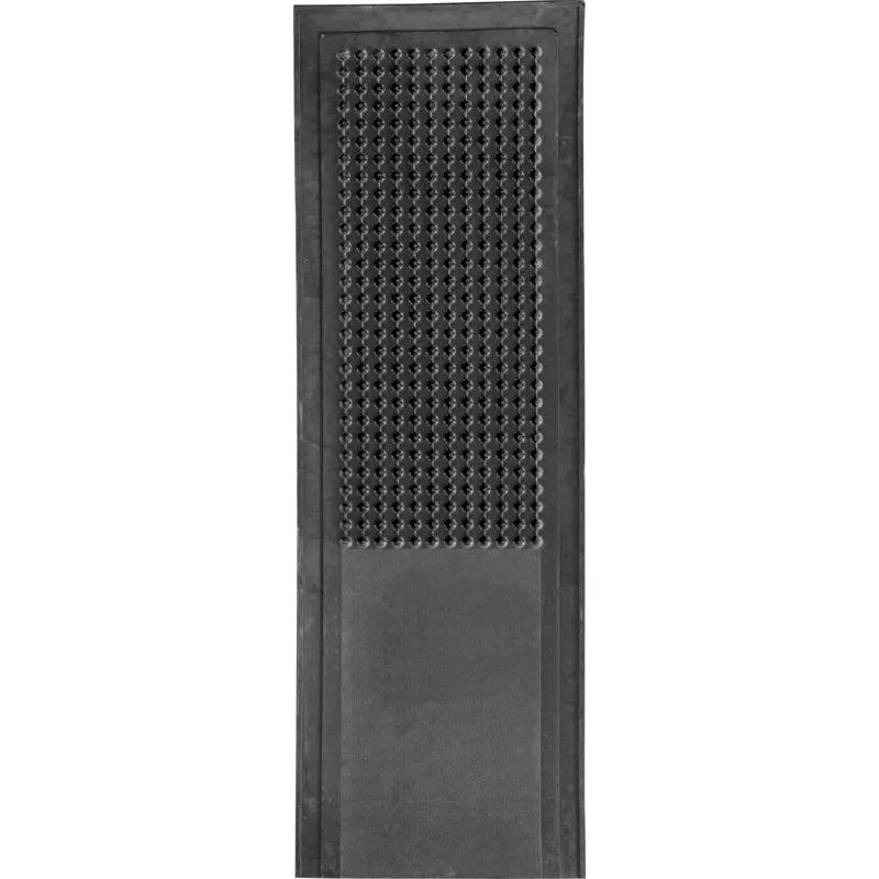 The lower part of the scratching mat is without studs to protect the legs and also covers the lower concrete edge.
