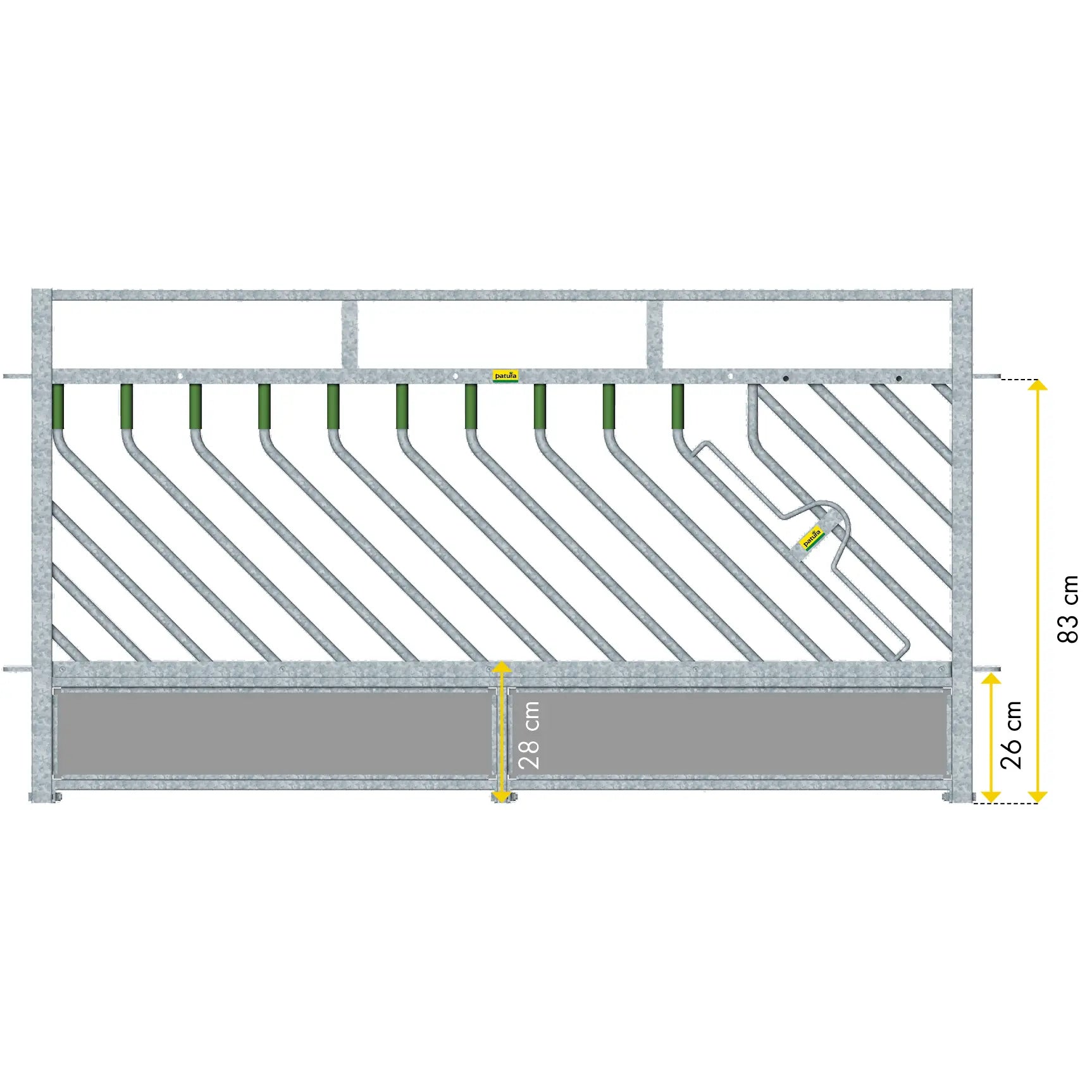 The arrangement and design of the feed fence allow feed to be presented efficiently. Feed can be introduced in a time-saving and targeted manner, simplifying the daily care of the animals. This reduces the workload and at the same time supports uniform food intake within the group.