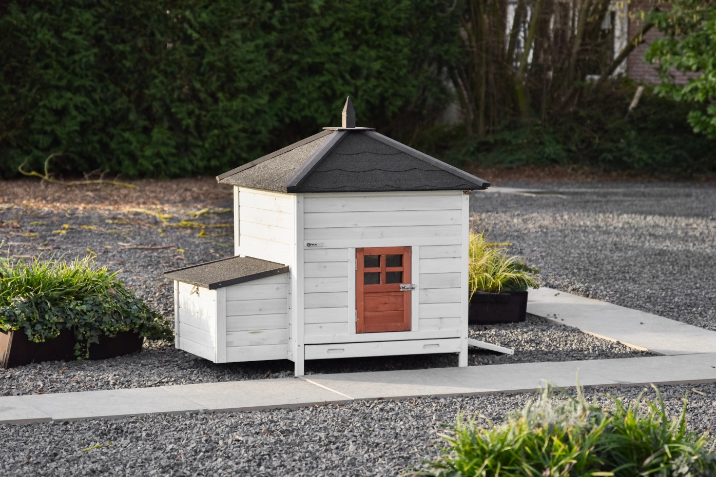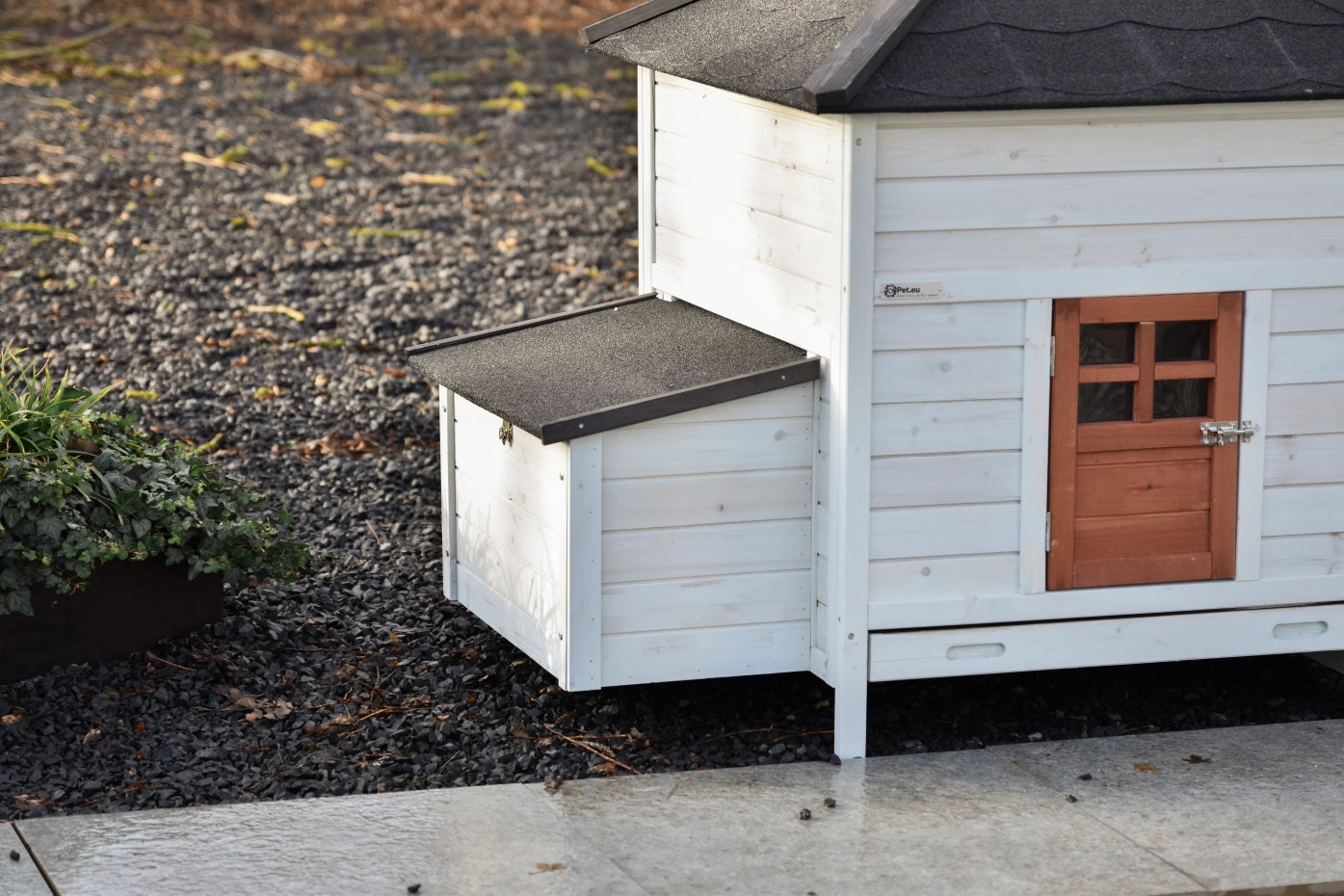 The Ambiance Large hutch is available in several versions. You can choose between a version without a run or a version with an integrated free-range run. Two roof variants are available for the model with a run: a covered run with roofing felt, which offers additional protection from the weather, or a run with a wire roof, which allows good air circulation.