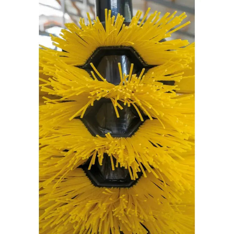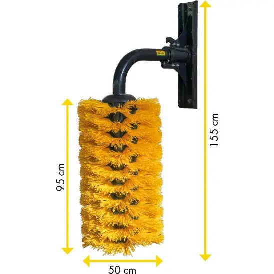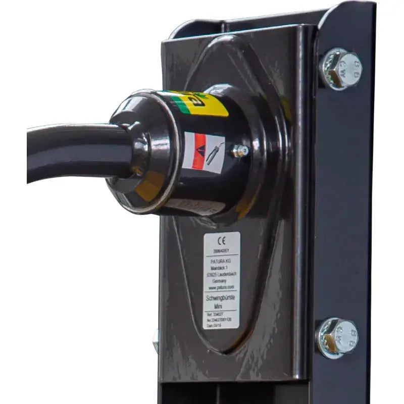 The mechanical oscillating brush models from PATURA do not require electricity and can be mounted easily and securely on any load-bearing wall or support. The scope of delivery includes the standard attachment, other special attachments are available on request. The oscillating movement of the brush allows the animals to reach important parts of the body and determine the scratching and cleaning intensity themselves. The intensive use of the brush increases the animals' activity level and keeps their fur clean. Due to the low recoil, the swing brush models are also safe to use for mixed groups of cows and calves or for horses. The individual brush disks are easy to clean and replace. The brush discs are characterized by a long service life. However, should a disc break, it can be replaced individually. The pole brush is ideal for horses and can be dowelled onto a concreted surface using the base plate or installed in the pasture using the new ground fixing set.