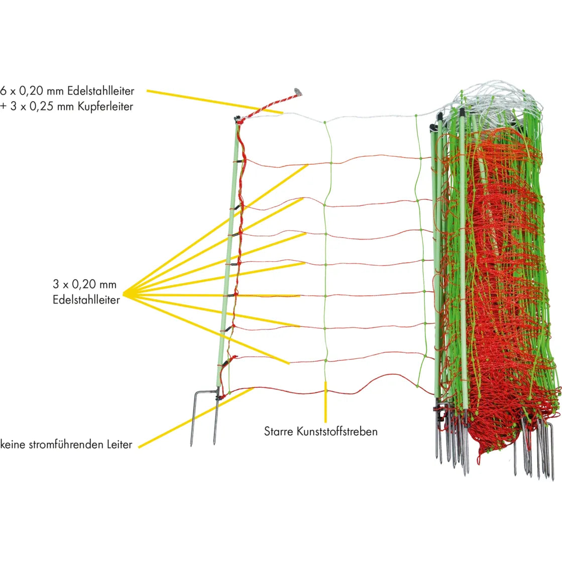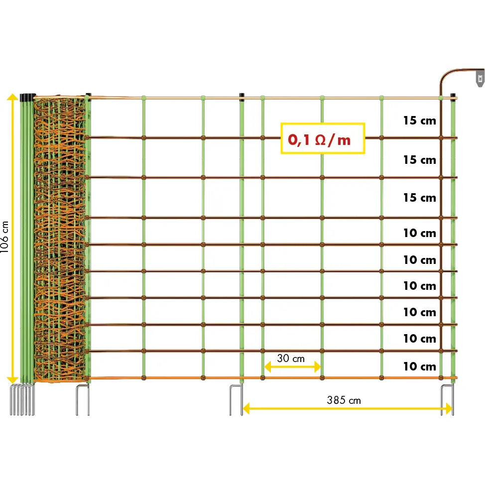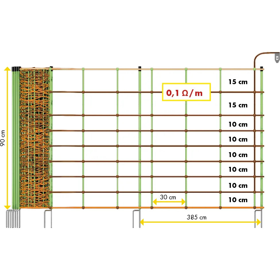 - 0.90 m: 14 poles with double spike, 9 horizontal plastic strands