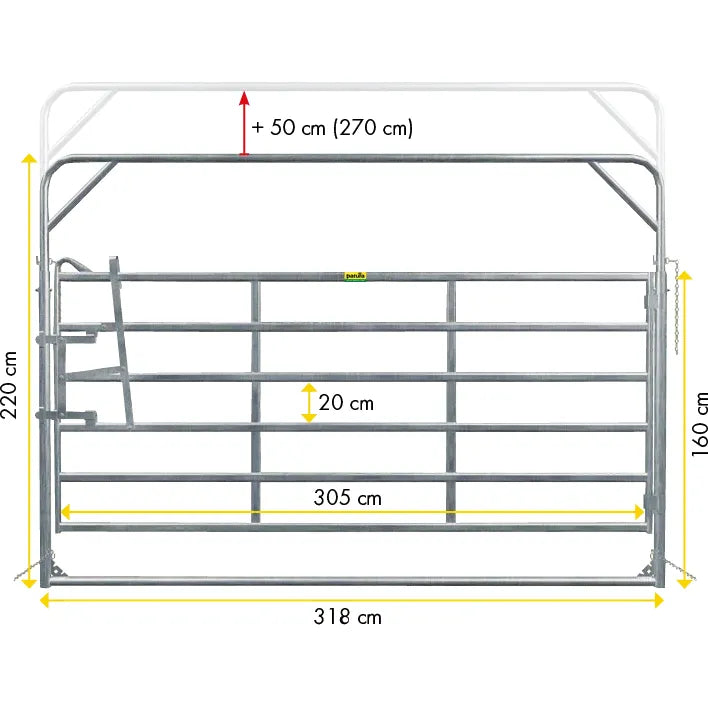 This fence panel is a sturdy, completely hot-dip galvanized up-and-over gate. The panel offers maximum stability with low weight. Optimum stability on the ground and possibility of slipping due to feet in skid design. Quick connection to the panels even on uneven terrain thanks to chain fastener with stainless steel screw link. The frame is height-adjustable twice.