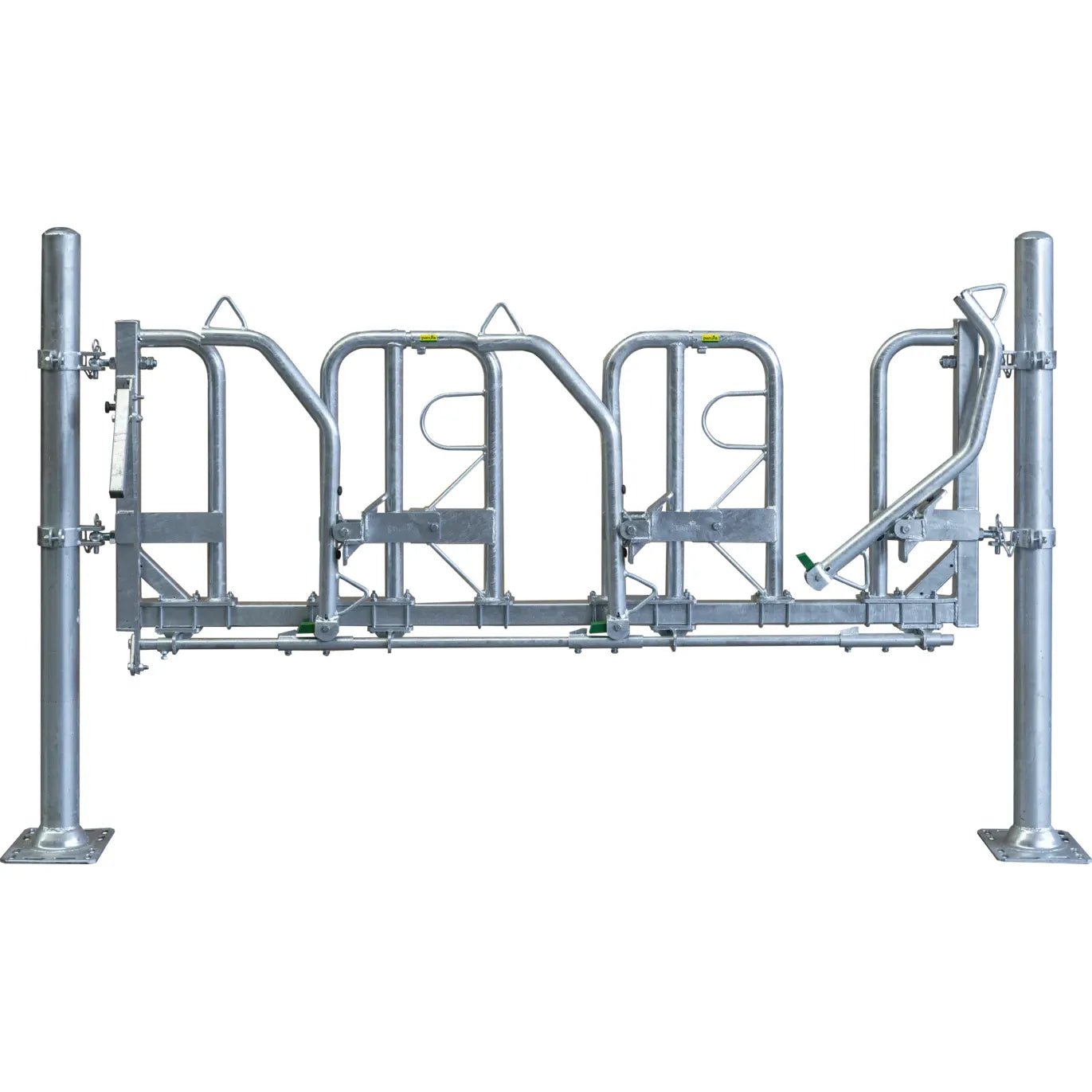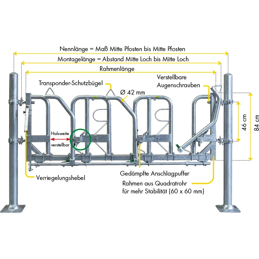 Notre cornadis suédois modulaire offre une flexibilité maximale pour chaque exploitation. Avec des largeurs de cou et d'aire d'alimentation réglables, il s'adapte facilement aux différentes tailles de troupeau et aux différents groupes d'âge. Le réglage simple par vis de serrage permet des adaptations rapides sans outils. Les tubes porteurs peuvent être raccourcis individuellement et installés dans presque toutes les dimensions. Choisissez entre un design robuste pour les vaches laitières (Ø 48 mm) ou une variante renforcée pour les taureaux (Ø 60 mm).