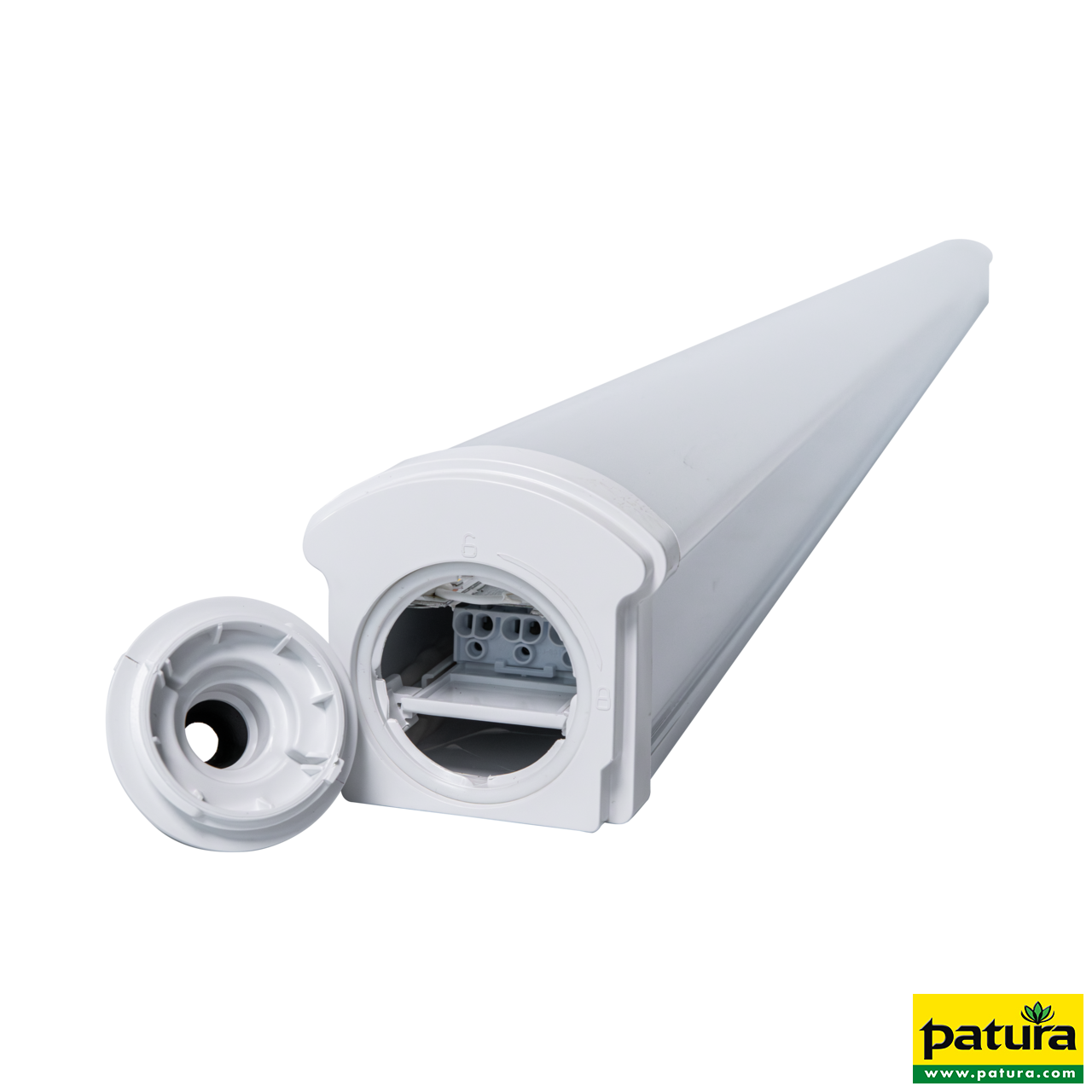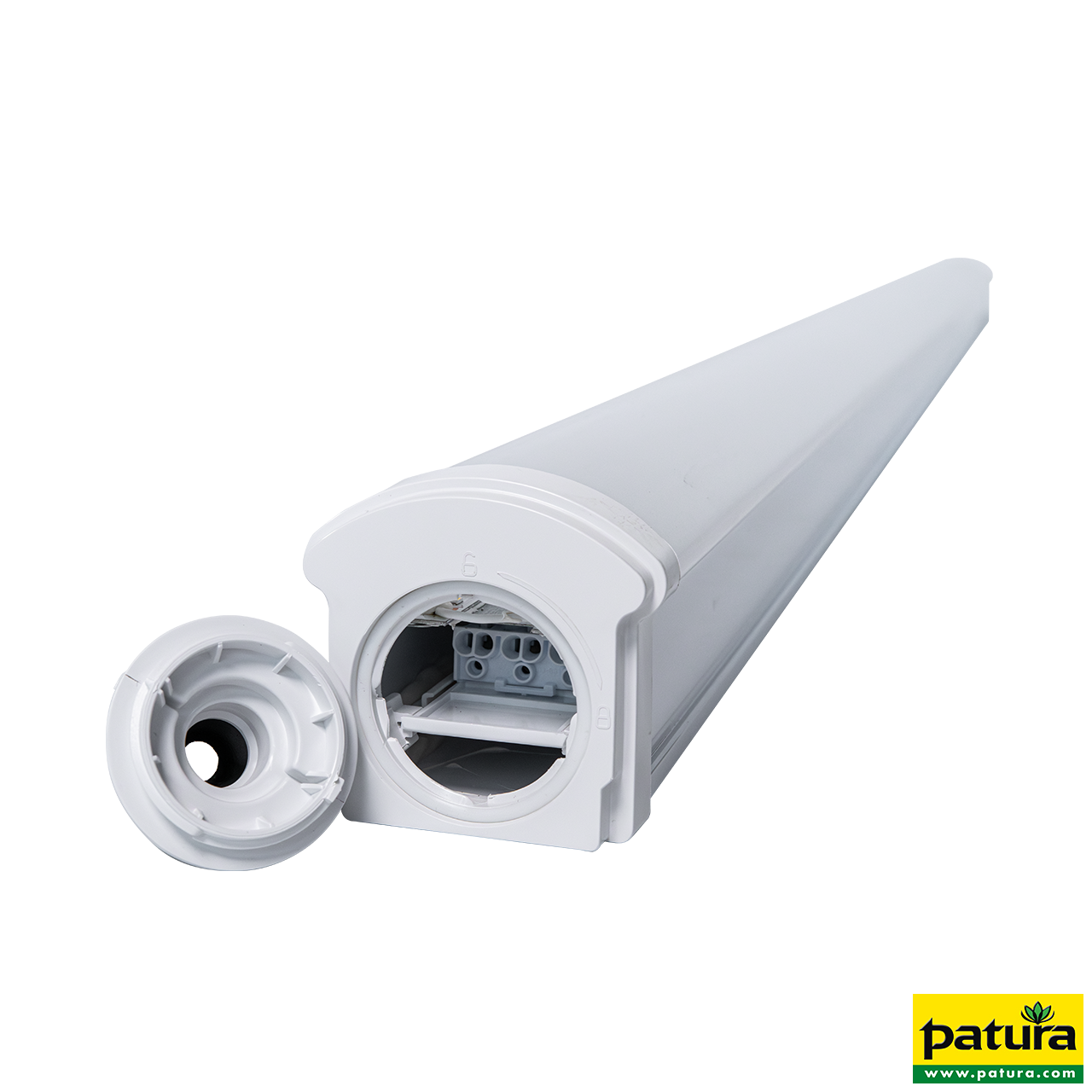 Le luminaire pour locaux humides à LED Power-Line de PATURA offre une solution efficace et économique pour éclairer uniformément les bâtiments d'élevage et les bâtiments commerciaux à faible hauteur de plafond. Les colliers de montage inclus dans la livraison facilitent la mise en place.
