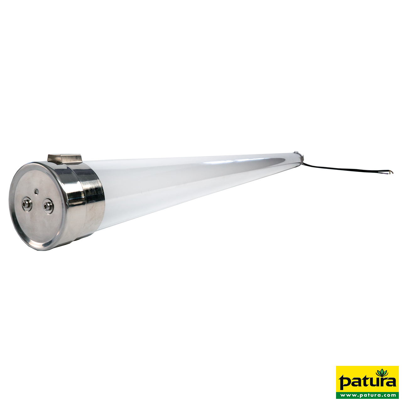 Le luminaire LED pour locaux humides de PATURA est la solution idéale pour une utilisation exigeante dans les étables à faible hauteur de plafond, où règnent des conditions humides, mouillées ou poussiéreuses. Grâce à son indice IP69K, ce luminaire offre une protection maximale contre la saleté, la poussière et l'humidité, même en cas de nettoyage à haute pression. Il convient parfaitement à l'éclairage de zones exposées au risque d'incendie en raison de la présence de foin, de fourrage ou de litière. Grâce à son éclairage uniforme et sans scintillement, ce luminaire est parfaitement adapté à l'élevage d'animaux. Le boîtier en verre robuste protège efficacement le luminaire contre les influences extérieures.