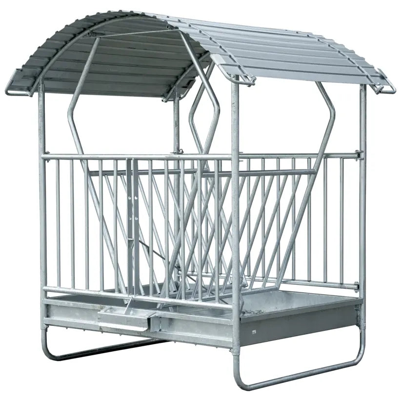 Le râtelier à corbeille pendulaire garantit un approvisionnement optimal en fourrage grossier pour les petits groupes d'animaux. L'arceau de protection intégré protège efficacement la tête des animaux. En option, il est possible d'installer un arceau de protection à trois points enfichable, qui assure encore plus de sécurité pour les animaux.