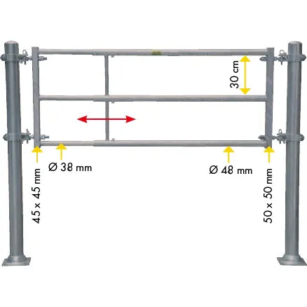 - 5 tubes transversaux de Ø 42,4 x 2,4 mm ou 33,7 x 2,5 mm