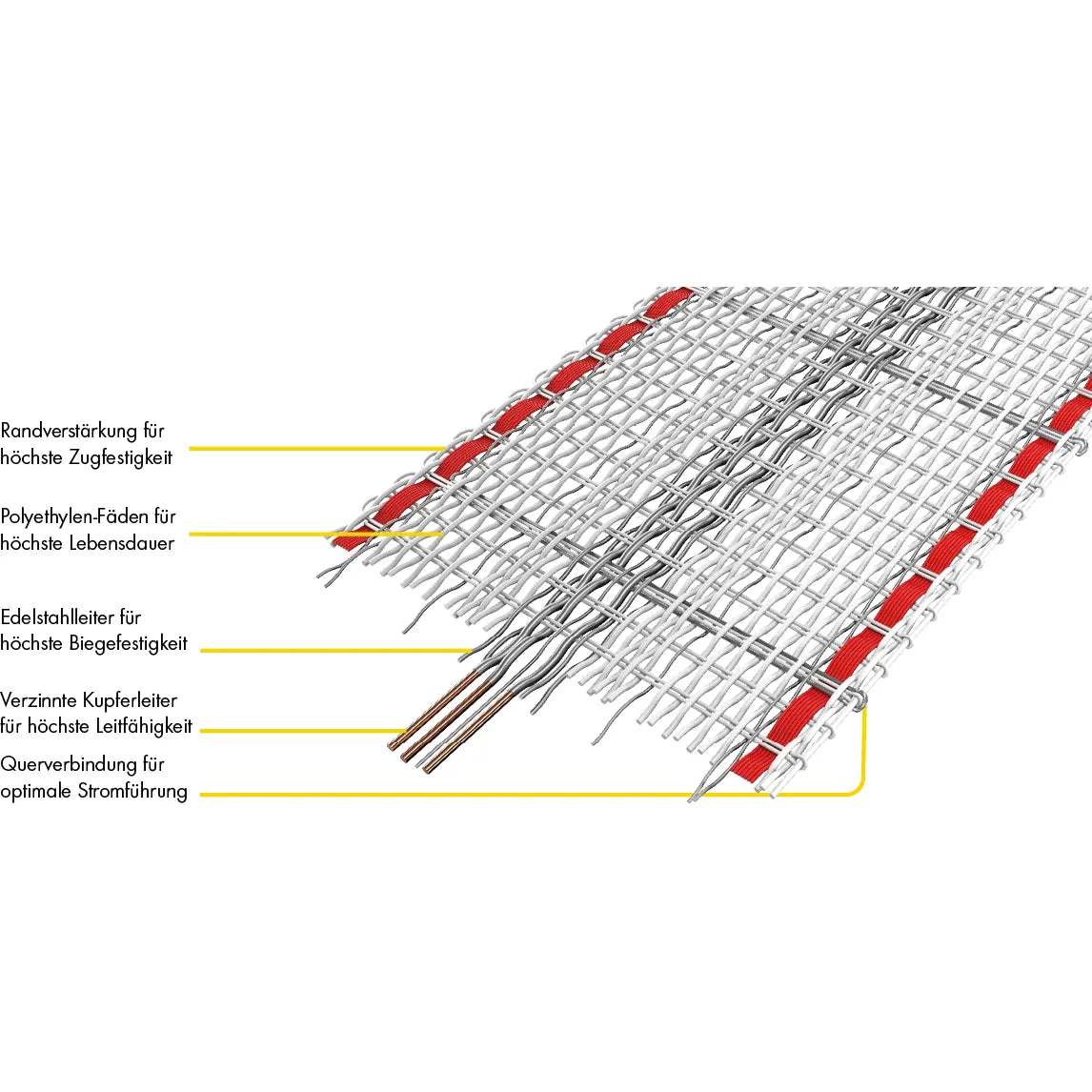 La particularité de ce produit est qu'il offre PATURA le traitement combiné de conducteurs en acier inoxydable et en cuivre. Les conducteurs en acier inoxydable sont extrêmement résistants, les conducteurs en cuivre sont très conducteurs. C'est uniquement grâce à cette combinaison qu'un conducteur en cuivre cassé est directement remis sous tension par un conducteur en acier inoxydable plus stable. Contrairement aux torons traditionnels, la longue durée de vie et la haute conductivité sont réunies dans un seul produit.