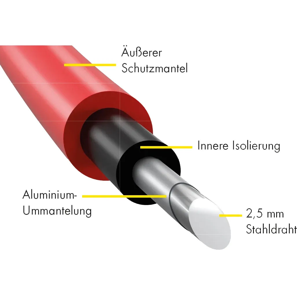 - Cavo unipolare a doppio isolamento, resistente all'alta tensione, con filo d'acciaio da 2,5 mm rivestito in alluminio