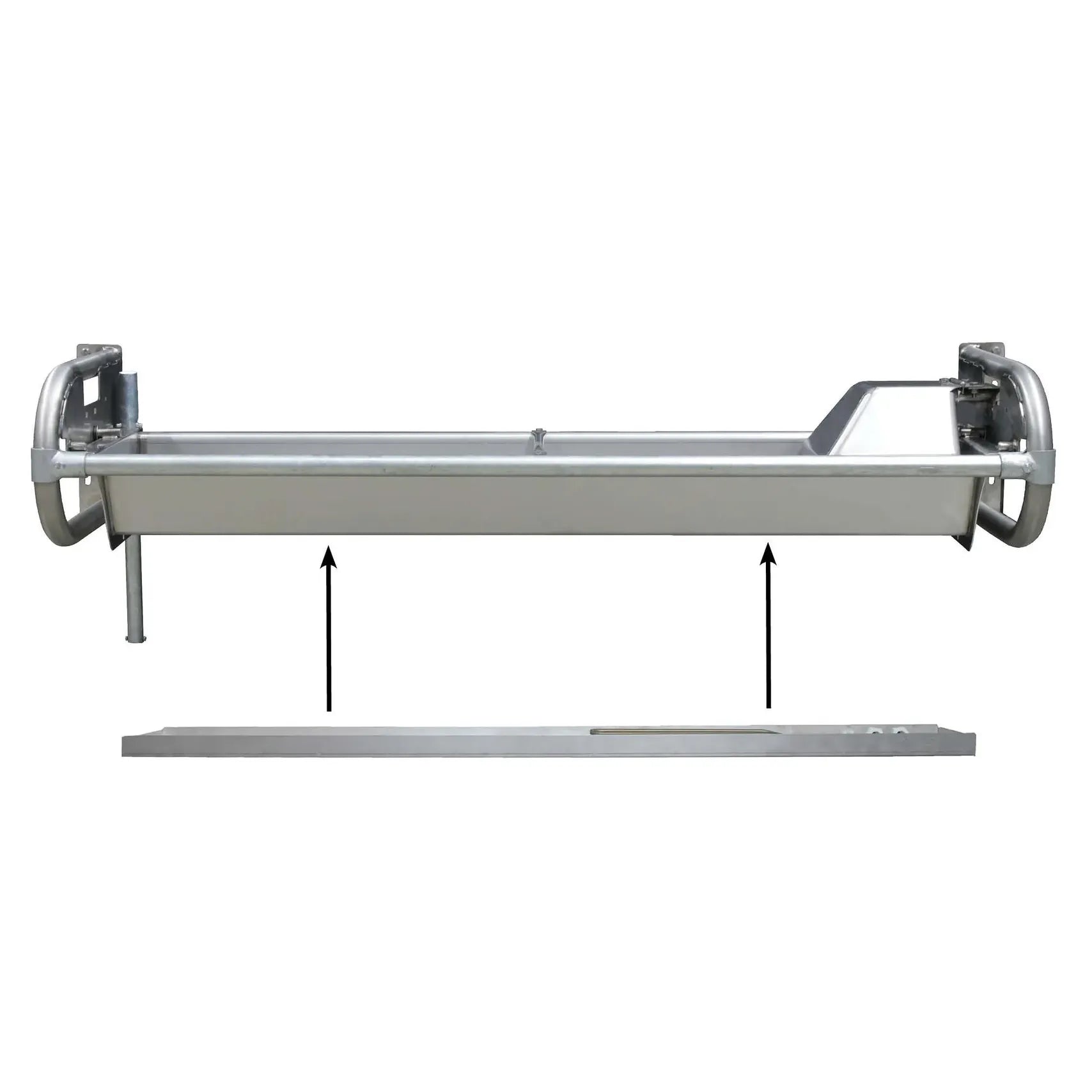 Flachschwenk-Trog 2,5 m - Inhalt 90 l für Wandmontage, Wanne und Konsolen aus Edelstahl - Sanilu