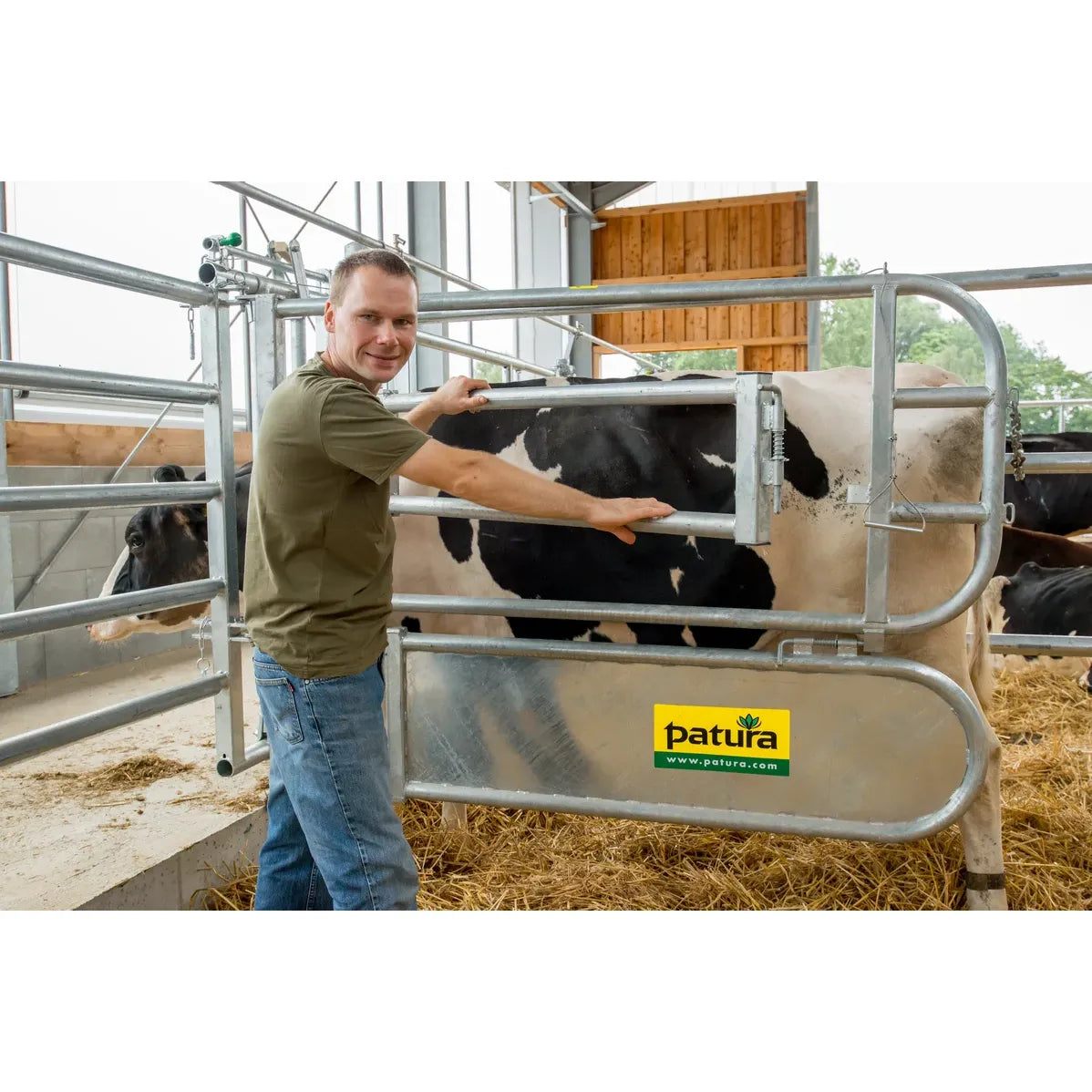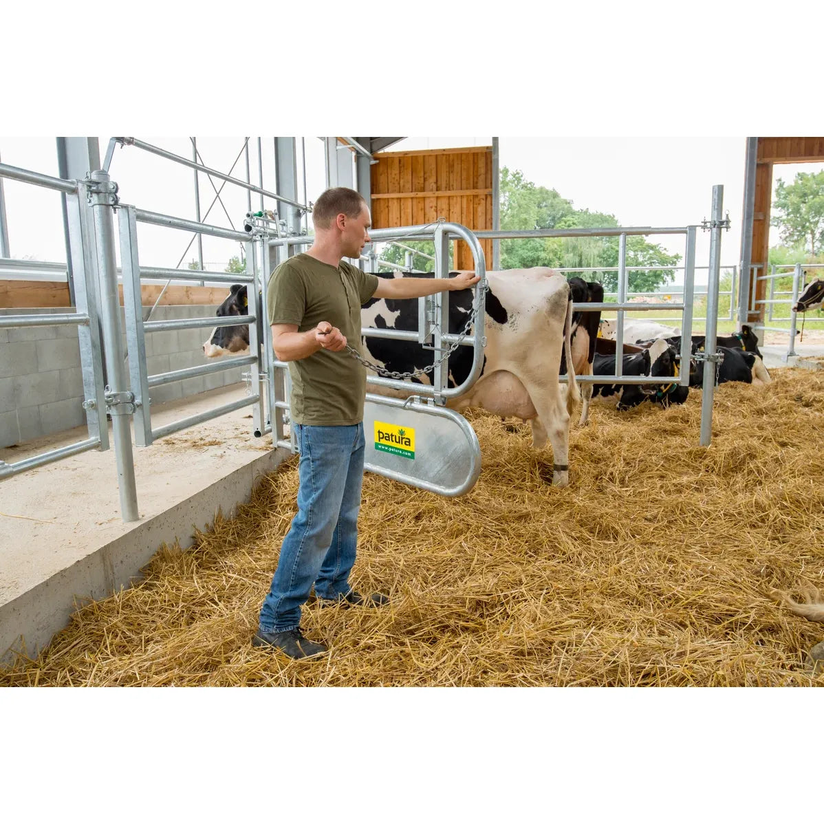 Create un accesso sicuro all'animale nel vostro recinto di paglia e ovunque vogliate trattenere gli animali per i trattamenti. Il sistema è adatto anche per l'installazione successiva in stalle già esistenti. Grazie alle due varianti, il recinto di alimentazione può essere installato separatamente o integrato nella parete divisoria del recinto. Il divisorio consente il trattamento da destra o da sinistra. Con questo sistema, gli animali possono essere trattenuti in modo sicuro durante le seguenti operazioni: parto, cesarei, operazioni, inseminazioni, esami di gravidanza e problemi alla mammella.