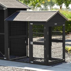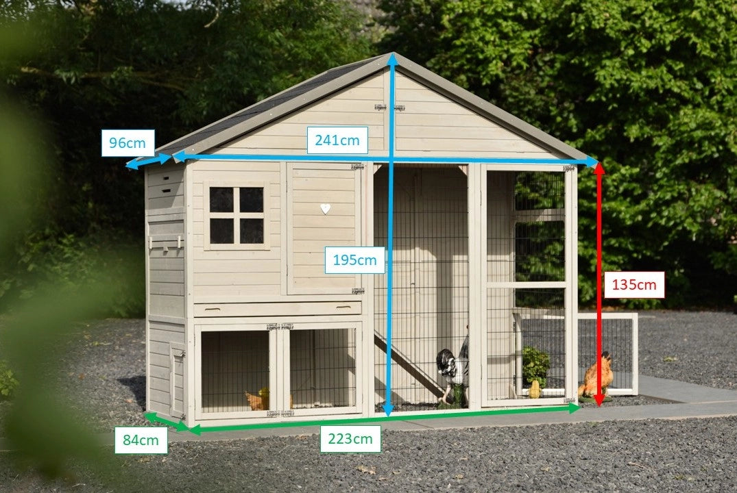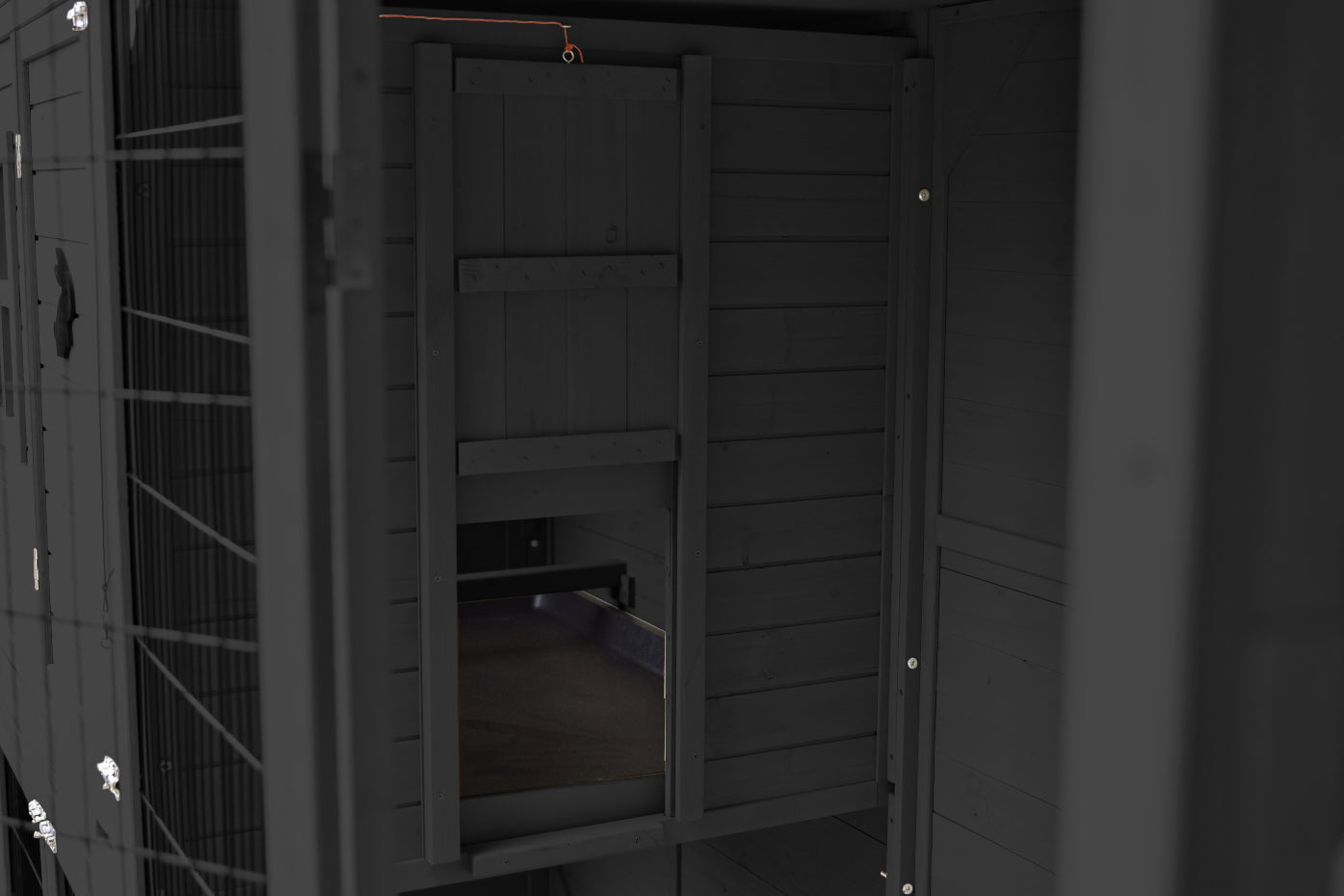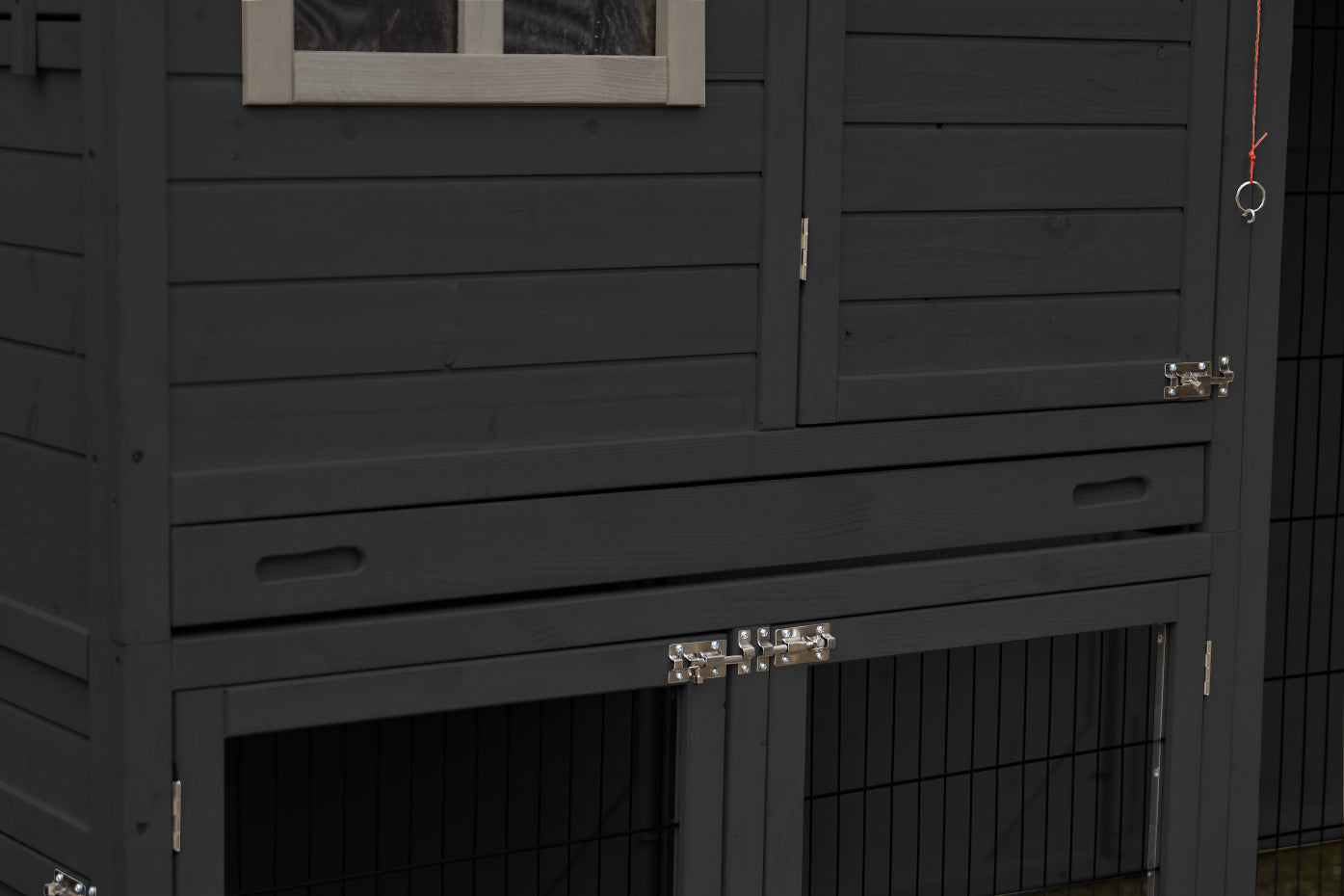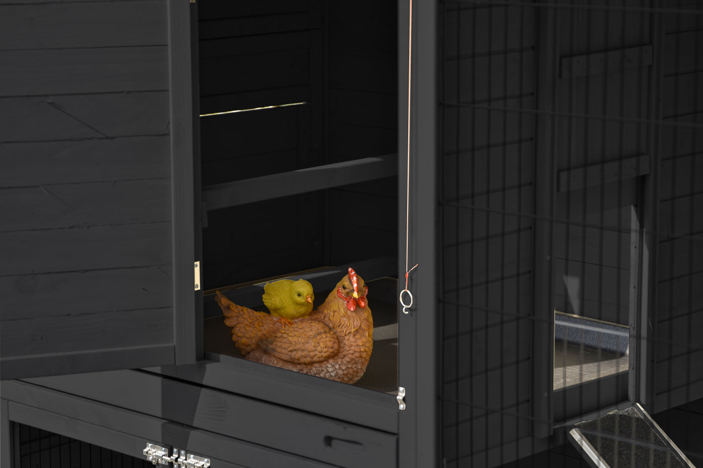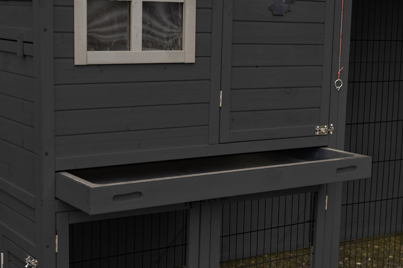 Il pollaio Holiday Large Black è spazioso, pratico ed esteticamente accattivante. La solida parete posteriore in legno e la parete laterale chiusa con sportello offrono ai polli un'ulteriore protezione. La stia è dotata di un corridoio e di una zona notte chiudibile con 2 posatoi. Sotto il tetto c'è un ampio spazio per riporre le galline, facilmente accessibile dalla parte anteriore. La stia è adatta per circa 6-10 polli.