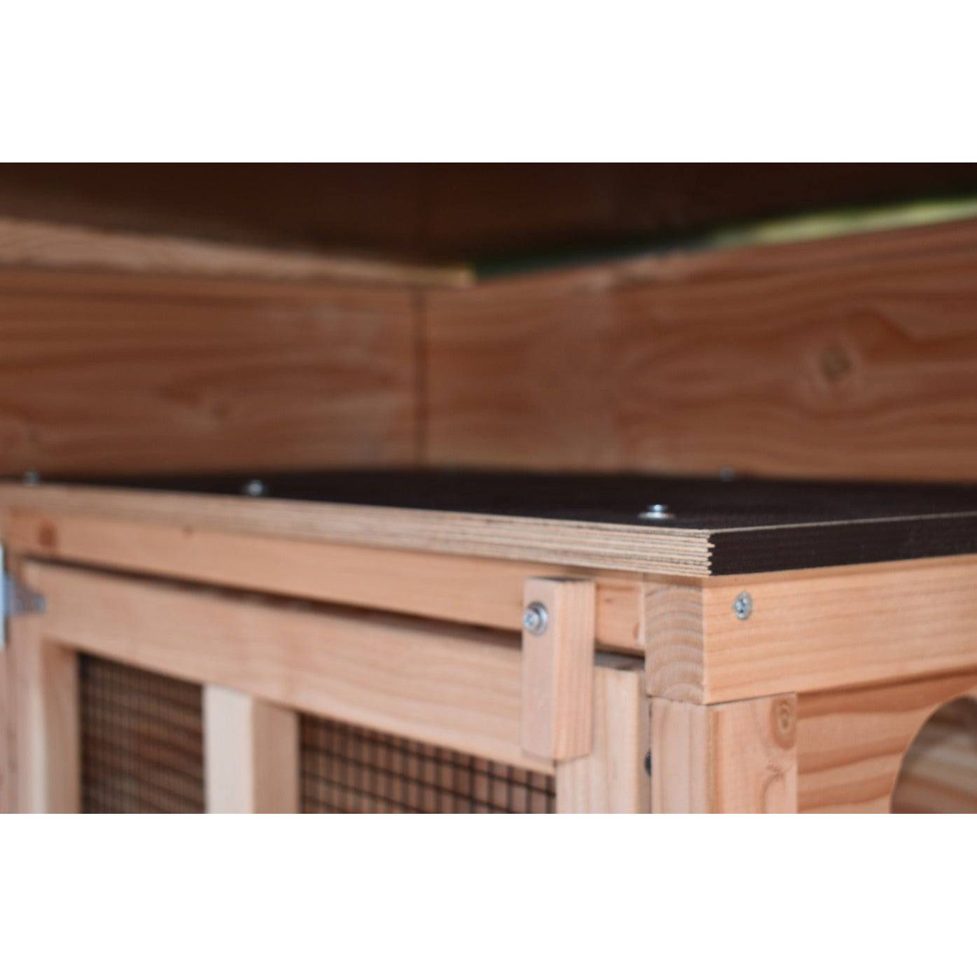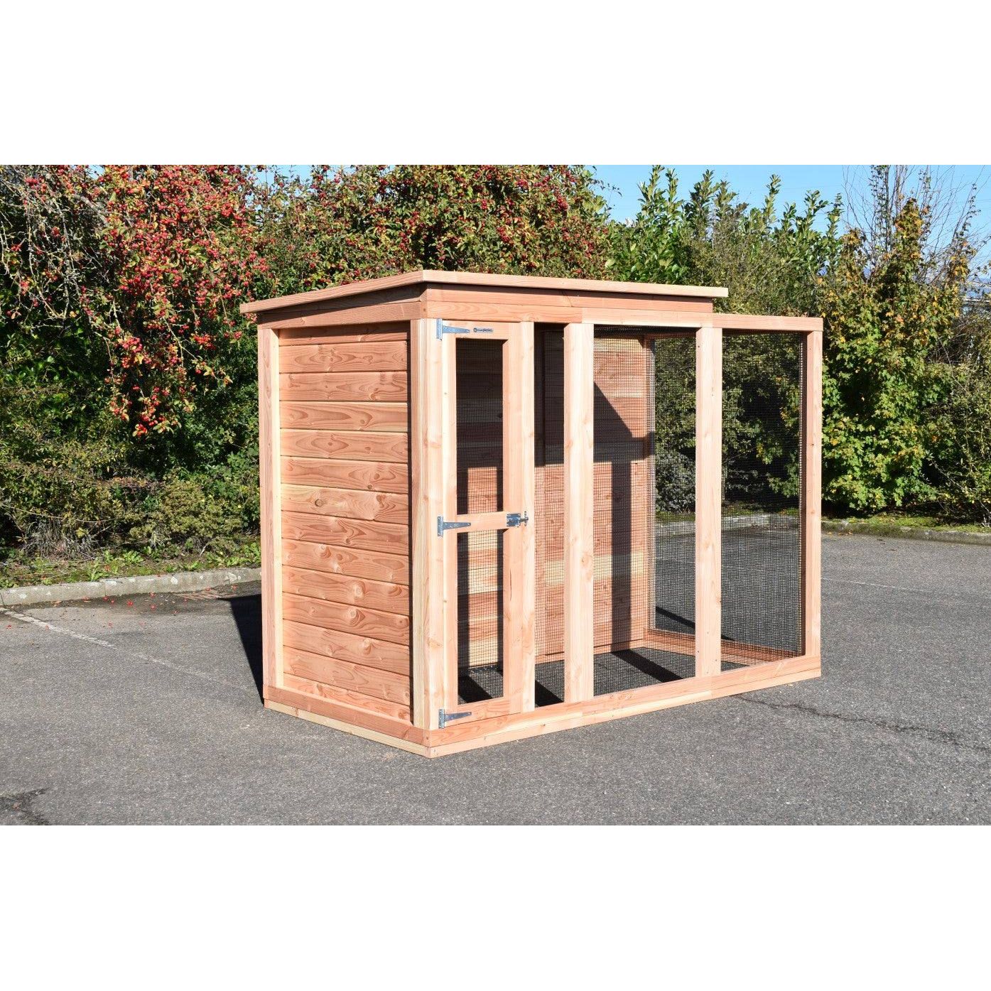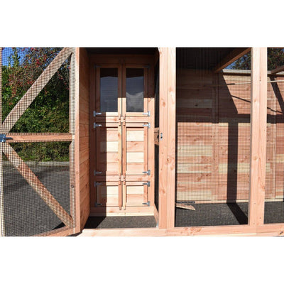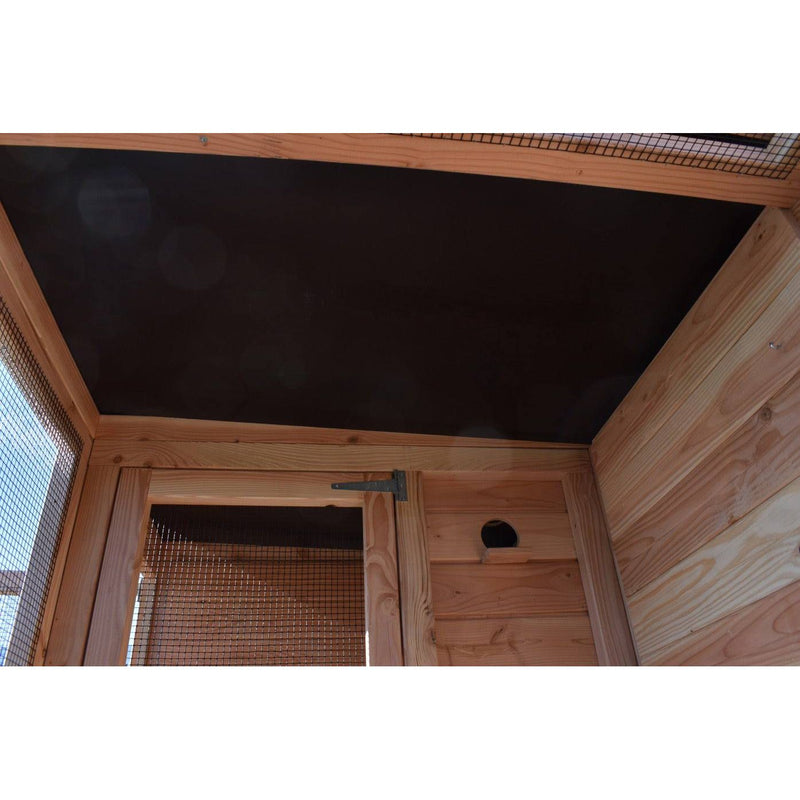 La voliera è realizzata in abete Douglas non trattato ed è quindi particolarmente resistente. Se lo desiderate, potete trattarla voi stessi con lo smalto di abete Douglas in dotazione per ritardare l'ingrigimento del legno. Per la zona delle fondamenta sono disponibili strisce di protezione in plastica opzionali contro l'umidità del terreno.