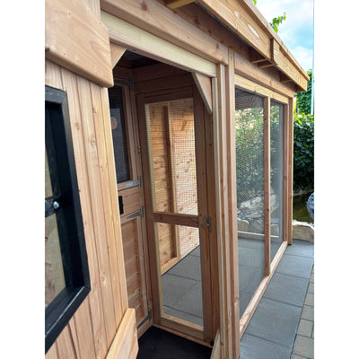 Vivete un pezzo di natura nel vostro giardino con la voliera per uccelli Jürg! Grazie alla camera di compensazione, potrete interagire con i vostri amici pennuti in qualsiasi momento. La buca per uccelli permette agli uccelli di volare e atterrare liberamente. Create un'oasi di libertà per i vostri uccelli!