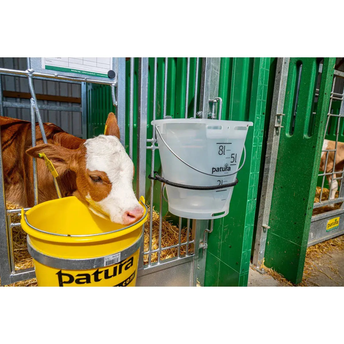 - Verhindert das Auswerfen des Nuckel-Tränkeeimers durch das Kalb