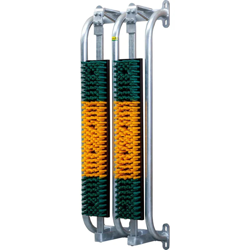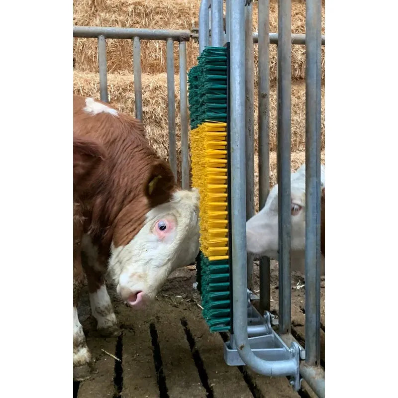 - die gefederten Bürsten mit zusätzlichem Schutzrahmen für die Bürstenkörper sind die ideale Scheuermöglichkeit für Rinder jeder Altersstufe
