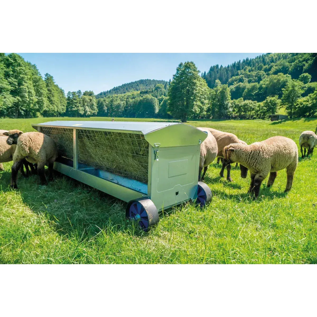 Heuraufe auf Rädern für Schafe