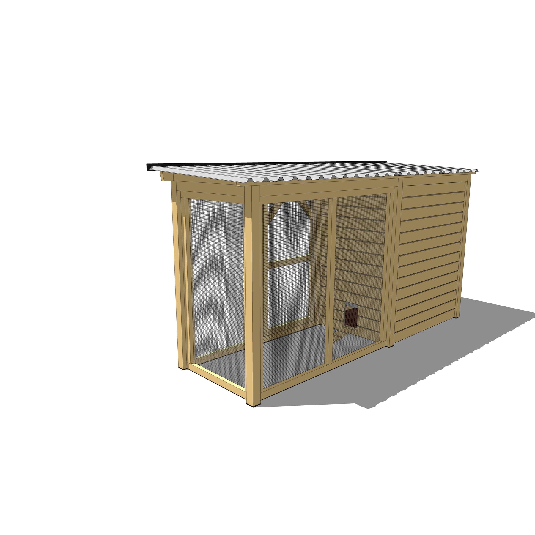 Die Dachneigung beträgt ca. 2–3 %, wodurch Regenwasser zuverlässig abfliessen kann. Auf Wunsch kann das Dach um 180 ° gedreht oder der gesamte Stall spiegelverkehrt aufgebaut werden – für maximale Flexibilität bei der Platzierung im Garten.