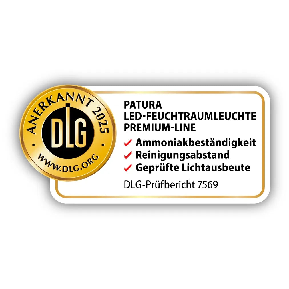Die LED-Feuchtraumleuchte von PATURA ist die ideale Lösung für den anspruchsvollen Einsatz in Ställen mit niedriger Deckenhöhe, in denen nasse, feuchte oder staubige Bedingungen herrschen. Dank IP69K bietet diese Leuchte den höchsten Schutz gegen Schmutz, Staub und Feuchtigkeit – selbst unter Hochdruckreinigung. Sie eignet sich bestens zur Beleuchtung von Bereichen, die durch Heu, Futtermittel oder Einstreu feuergefährdet sind. Dank der flimmerfreien, gleichmässigen Ausleuchtung ist die Leuchte bestens für die Tierhaltung geeignet. Das robuste Glasgehäuse schützt die Leuchte zuverlässig vor äusseren Einflüssen.