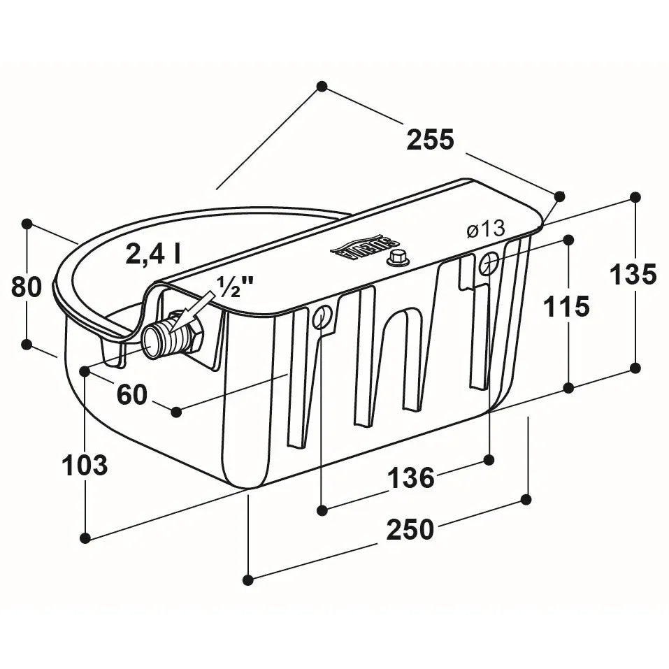 - mit eingebautem Heizelement 24 V/40 W, an der Beckenunterseite