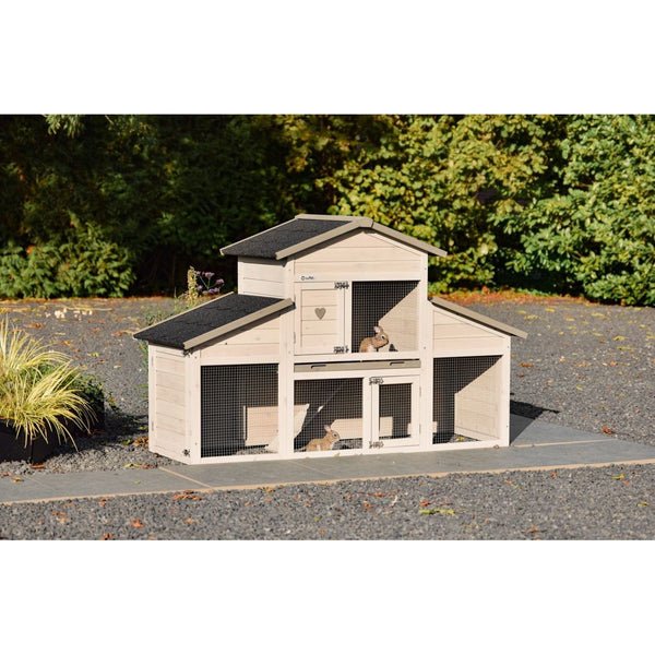 - Dieser Kaninchenstall ist mit grossen Türen für eine optimale Zugänglichkeit ausgestattet.