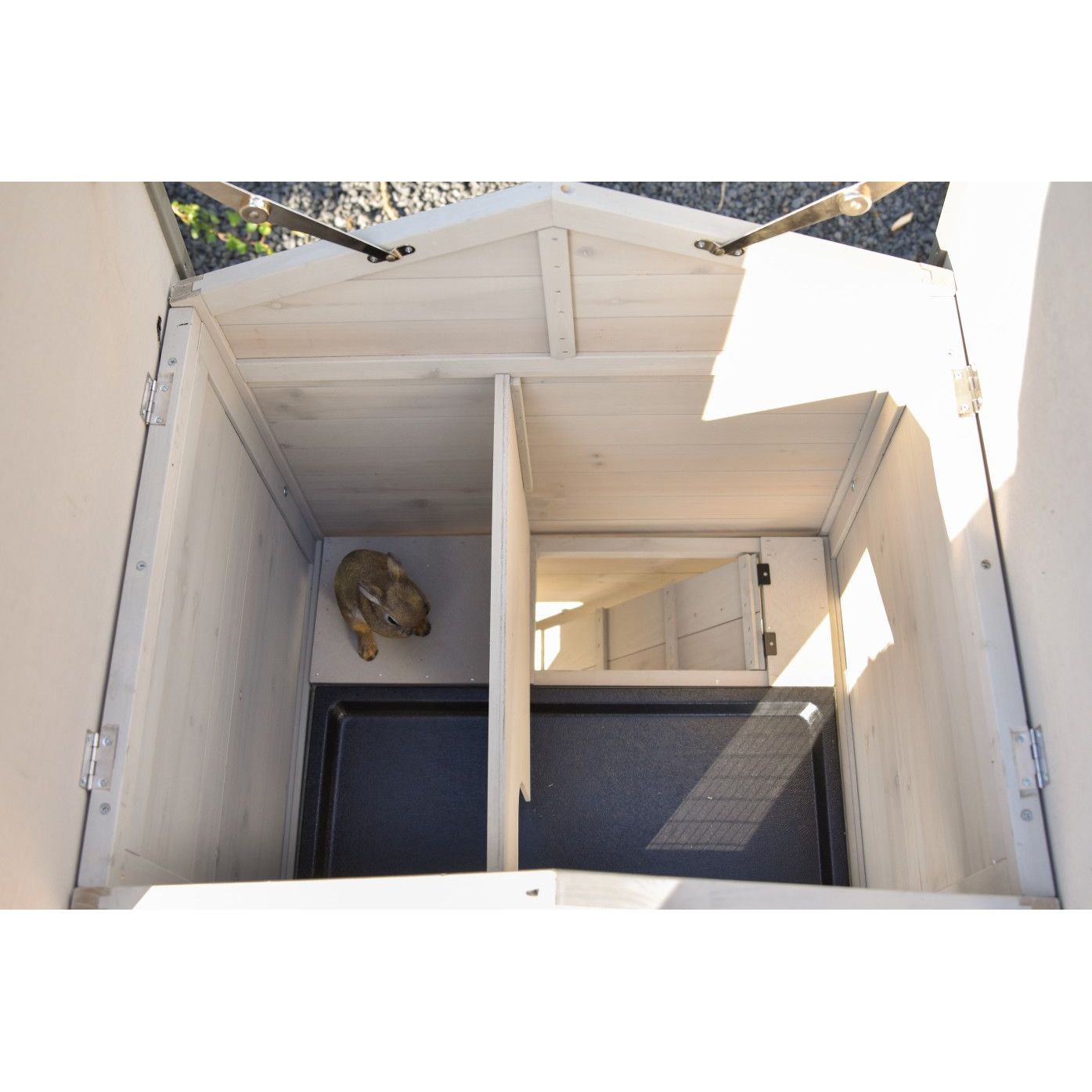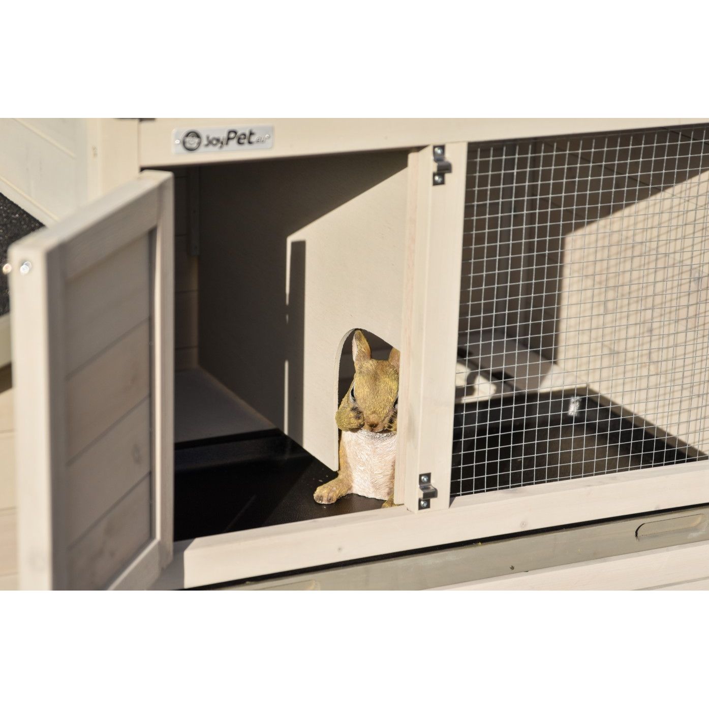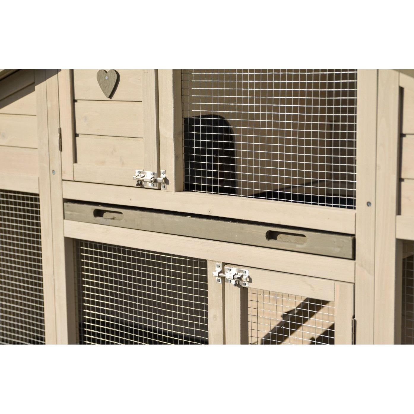 • Im unteren Auslauf befinden sich grosse Türen, sodass Ihre Kaninchen immer gut erreichbar sind.