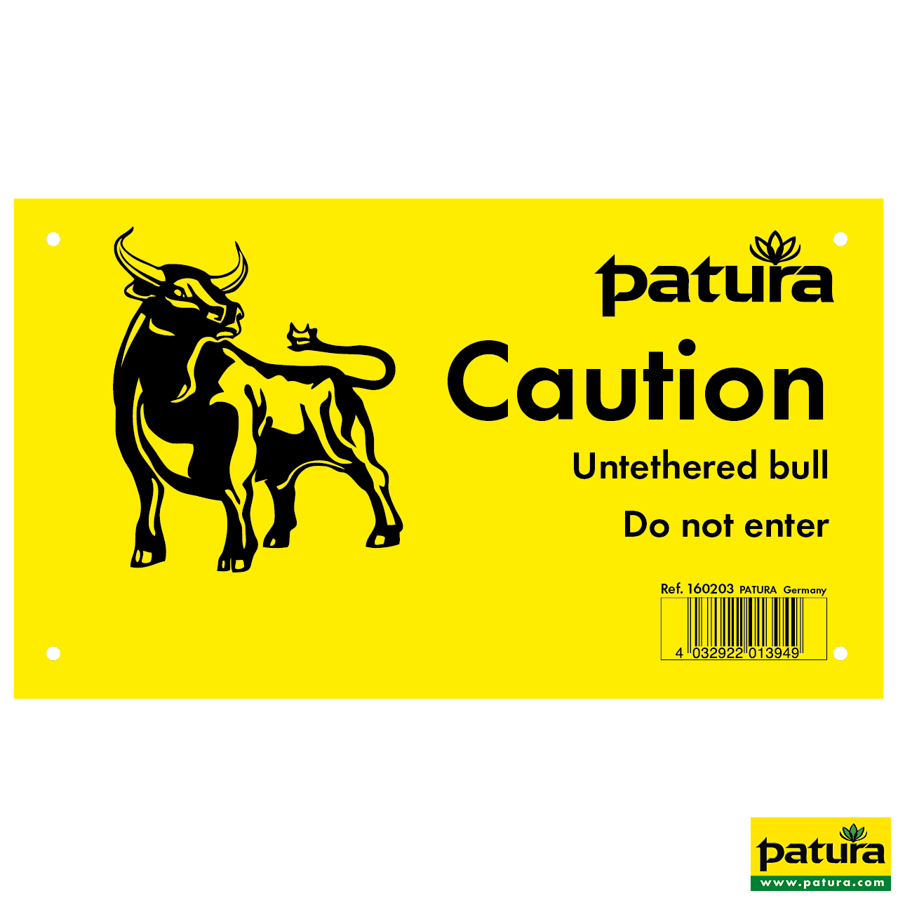 Warnschild, Vorsicht freilaufender Bulle, Kunststoff -englisch- PATURA