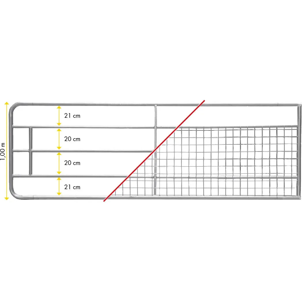 Dieses Weidezauntor ist ein stabiles, feuerverzinktes Tor aus Stahlrohr, inklusive aller Montageteile. Das Weidezauntor sicher und mit einem Schloss abschliessbar. Es ist mit einem abgerundeten, automatischen Riegelverschluss versehen. Mit den mitgelieferten Montageteilen kann das Tor an Holzpfosten befestigt werden. Höhe 1,00 m.