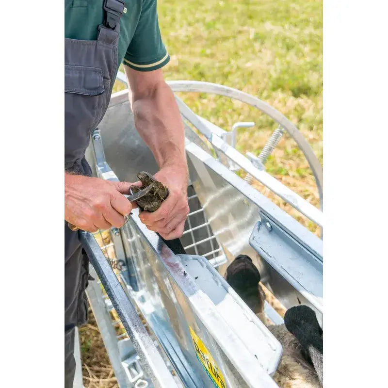 • Leichtes Drehen des Schafes auf den Rücken für eine problemlose Behandlung der Klauen in bequemer Arbeitshöhe